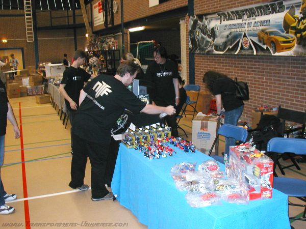 Nachdem der erste Schub Adrenalin und Endorphin erstmal verraucht war ging es an den Aufbau des NTF Standes. Und ganz nebenbei wollten natürlich auch noch einige Geschäfte dahinter getätigt werden. So erhielten zwei glückliche Kollegen von mir die erstandenen Botcon Exklusivfiguren, ein Supreme Cheetor aus Beast Machines wurde verschachert, und eine Reihe weiterer Reservierungen und Tauschgeschäfte gingen über die Bühne.