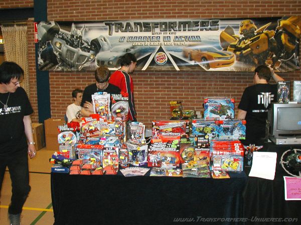Aber immerhin konnten wir ein großes Transformers Banner beisteuern, mit welchem wir die doch arg karge Rückwand hinter unserem Stand schmückten. Dazu musste natürlich Cybertroner die Lautsprecher aus seinem Auto opfern, aber uns ist ja kein Opfer zu groß, oder? Bei Redaktionsschluß lagen leider keine Informationen darüber vor, ob die Kabel am Ende der Veranstaltung wieder erfolgreich installiert und ihrem alten Zweck zugeführt wurden konnten.