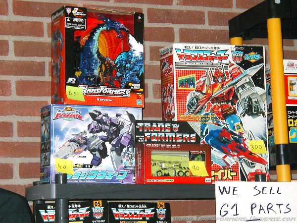 Insgesamt waren Figuren aus allen Serien und Jahren vertreten. G1 bis Animated, Amerika bis Japan, Hasbro bis Takara, Figuren bis DVDs, alles dabei. Schnell wurde klar, dass die noch originalverpackten Figuren kaum zu bezahlen waren, es allerdings bei den losen Figuren doch das eine oder andere Schnäppchen zu ergattern galt. Hier gehe ich jedoch nicht ins Detail, denn es geht schließlich keinen was an, wie sehr ich mich in den finanziellen Ruin gestürzt habe, um meiner Transformers Sucht zu frönen.