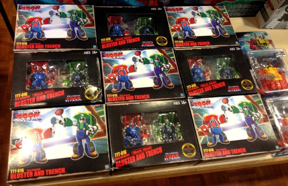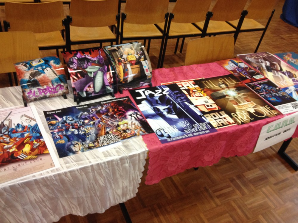 Als Stargäste hatten wir dieses Jahr wieder geballte Comic-Kompetenz vor Ort, nämlich Zeichner Andrew Griffith und Kolorist John-Paul Bove von IDW Comics. Zwei sehr sympathische Herren, die den Traum leben vom Fan zum professionellen Mitgestalter der Transformers aufgestiegen zu sein, und sich redlich bemühten sich mit den Einheimischen auch mal in der Landessprache zu unterhalten. Okay, Deutsch ist nicht einfach, aber für das Bemühen gibt’s Extrapunkte. John-Paul und Andrew halfen uns dann auch bei der Auslosung der zahlreichen Tombola-Preise, zusammen mit den CONS Stammgästen Raymond-T und G-Force Customs (dessen richtigen Namen ich mir irgendwann mal merken werde, versprochen). Und wo wir von der Tombola reden, da waren diesmal richtig tolle Preise dabei. Zum Tisch ausklappbare Kühlboxen von Paramount, ein riesiger Masterpiece Grimlock von Actionfiguren24.de und natürlich Comics von Pannini. Eine ganze Menge Comics sogar. Sehr, sehr viele Comics, um genau zu sein. Eine wahre Flut an Comics, könnte man auch sagen. Gefühlte sechstausend Comics, würde ich fast behaupten. Also ziemlich viele auf jeden Fall. Die meisten dieser Tombola-Preise (inklusive vieler, vieler, vieler Comics) durfte glaube ich der kleinste anwesende Transformers Fan abgrasen – oder sagen wir der kleinste Fan der schon auf den eigenen zwei Beinen da war. Besagter Fan war klein, weiblich, blond, süß, in rosa gekleidet und nahm auch beim sechsten Mal noch den langen Weg um die Tische rum und durch die dickste Menschenmenge hindurch, um den gewonnenen Tombola Preis abzuholen. Nur beim Wegtragen der gewonnenen Kühlbox musste dann doch mal jemand größeres mit anpacken, sonst wäre das glaube ich etwas schwierig geworden.
