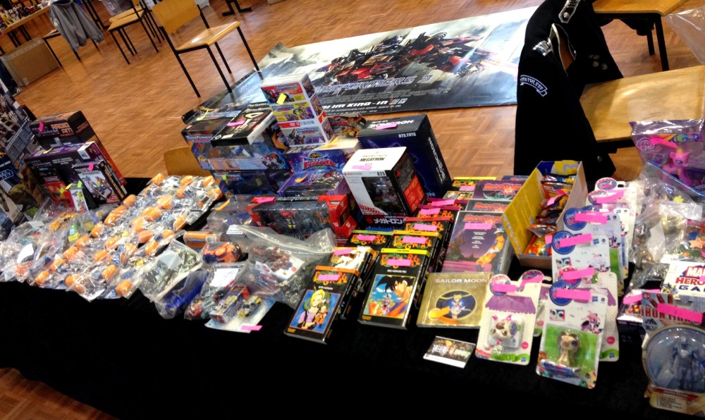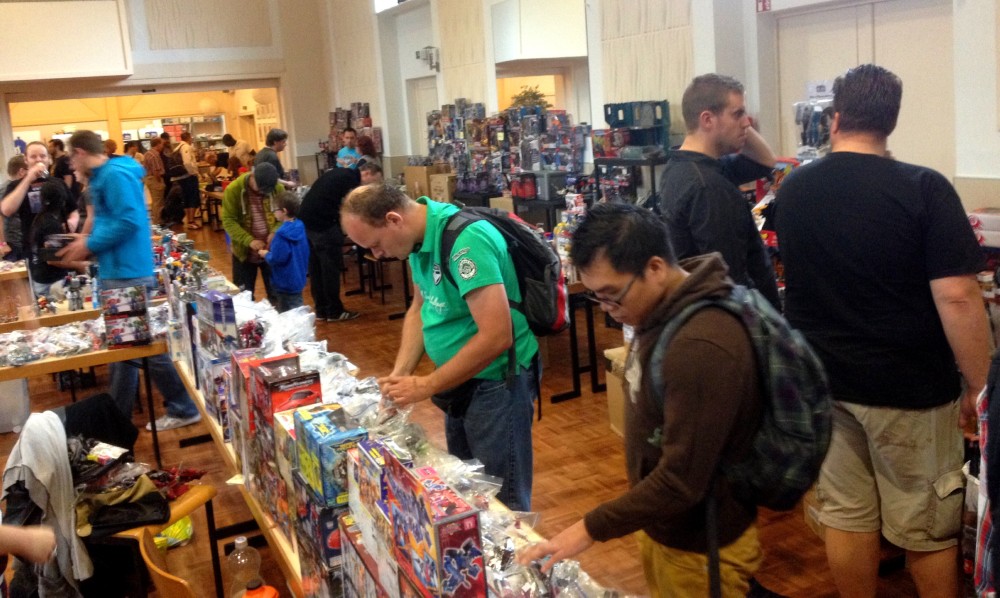Und wie es scheinbar ja irgendwie auch schon zur Tradition geworden ist waren auch in diesem Jahr die Vorzeichen nicht so rosig. Erneut gab es kurzfristige Ausfälle im Orga-Team, außerdem war das Wetter nicht so wirklich toll und bei mir persönlich stand die Teilnahme sogar noch auf der Kippe, da ich gerade eine Woche zuvor mit einer schweren Erkältung im Bett lag. Ich überwand diese zwar rechtzeitig, steckte dafür aber meine Frau an, so dass sie dann dieses Jahr leider nicht mitkommen konnte. Glücklicherweise sprang mein Schwiegervater Karl-Heinz ein, so dass der Transformers-Universe.com Stand auch immer bemannt war. Aber wie gesagt: im Vorfeld sah es teilweise wieder mal alles andere als gut aus. Dafür allerdings lief am Tag selbst alles wie geschmiert. Gut, beim sechsten Mal hat man auch irgendwie langsam den Bogen raus. Da flutscht die Organisation der Contests und Interviews nur so und auch die Besucher kennen sich so schön langsam aus und müssen nicht mehr jeder einzeln instruiert werden, wo die Toiletten sind und was genau dieses exotische deutsche Gericht namens „Currywurst mit Pommes Rot-Weiß“ ist.
