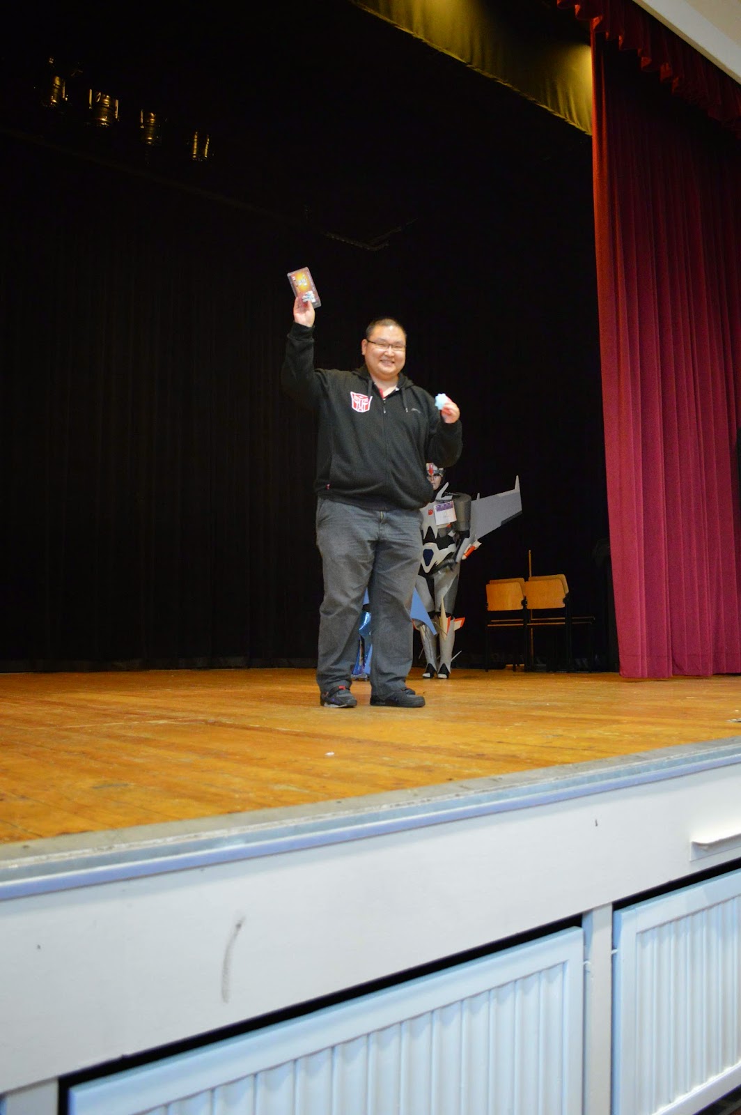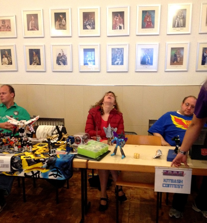 Ja, was bleibt noch zu sagen? Was die vor Ort stattfindenden Contests angeht hatten wir uns ja ein klein wenig verschlankt, dafür aber an Teilnehmer und Qualität erneut zugelegt. Es gab den Cosplay Contest inklusive Modenschau mit diesmal 12 Teilnehmern, souverän gewonnen von Transformers Prime Soundwave. Außerdem hatten wir diesmal vier vor Ort fertiggestellte Custom-Transformer für den Kitbash Contest, wo dann unsere Stargast Jury den glücklichen Sieger ermitteln durfte. Das so viel Kitbashen ordentlich schlaucht ist natürlich selbstredend, somit verzeihen wir auch das eine oder andere Nickerchen vor Ort.