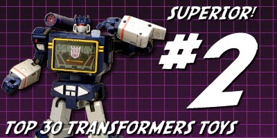 Der große lila Zyklop hat es nur um Haaresbreite in die Top 30 geschafft, sich dank einem minimal besseren durchschnittlichen Rang an Masterpiece MP-12 Lambor / Sideswipe vorbei schleichend. Aber es ist ja auch nur logisch, oder nicht? Shockwave ist einer der beliebtesten Charaktere der gesamten Franchise und seine originale Spielzeugversion von 1985 ist nie übertroffen worden. Shockwave wurde ursprünglich von ToyCo unter dem Namen „Astro Magnum“ in grauen Farben rausgebracht, eine Version die später auch nochmal bei der Ladenkette Radioshaq unter dem Namen “Galactic Man” rauskam. Er war außerdem einer der ersten – wenn nicht sogar der erste – Transformer des Jahres 1985, also der zweiten Welle.
