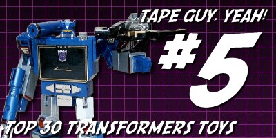 Obwohl viele Leute seinen Look in punkto Details etwas langweilig fanden (dank Reprolabels schnell behoben) ist er trotzdem ein tolles Update eines klassischen Charakters und enthält sogar ein Gimmick, welches Jazz in, glaube ich, sage und schreibe einer G1 Episode genutzt hat: Lautsprecher. Die Figur war so populär, dass sie für zahlreiche Repaints herhalten durfte, darunter Wheelie, Treadshot und Stepper. Unterm Strich somit: Jazz ist einfach nur cool und verdient einen Platz in den Top 30.