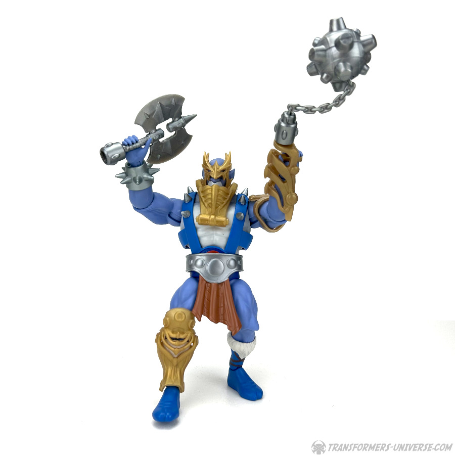 Bemerkungen: Machen wir uns nichts vor, Thundercats ist im Prinzip Masters of the Universe, nur mit Katzen. Jetzt nicht nur wegen dem magischen Schwert und dem recht tot aussehenden Hauptbösewicht. Auch die Hauptcharaktere können gewisse Ähnlichkeiten nicht verbergen. Panthro ist der große Typ, der die großen Waffen baut und als Stimme der Erfahrung für den Haupthelden dient. Also genau wie Man-at-Arms. Ihm also eine Man-at-Arms ähnliche Rüstung für dieses Crossover zu verpassen war jetzt keine kreative Schwerstarbeit, sondern einfach nur logisch.