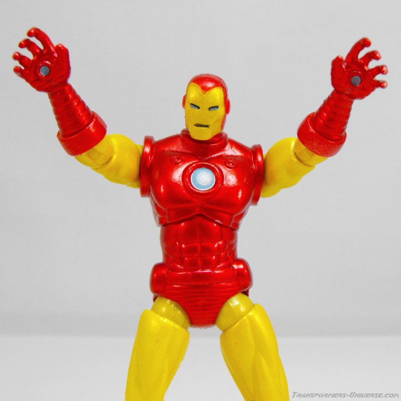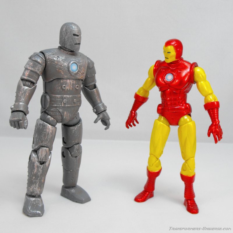 Classic Ironman: Diese Figur hier ist ein nahezu perfektes Ebenbild der Rüstung, die zwanzig Jahre lang der einzig wahre und absolut echte Ironman war. Lt. Marvel Handbuch ist es die Mark V, aber für die Fans ist es einfach nur „Classic Ironman“. Anders als die originale Ironman Rüstung macht diese Figur hier mehr den Eindruck eines Spandex-Anzugs mit einigen Zusatzmodulen denn einer vollständigen Rüstung, was zum einen den Comic-Stil sehr gut wiedergibt, aber auch einen story-technischen Hintergrund hat. Denn diese Rüstung hier war die erste, die nicht aus starren Teilen sondern aus zahllosen einzelnen Metallplättchen bestand, die wie bei einem Kettenhemd alle ineinander greifen und somit sehr flexibel sind. Deshalb war das hier auch die erste Rüstung, die in den Comics in einen Aktenkoffer hineingepasst hat (und somit die Inspiration für die „Koffer-Rüstung“ aus dem Kinofilm darstellt).