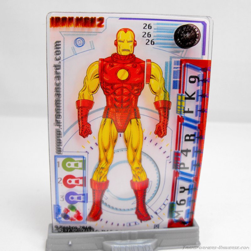 Das einzige Gimmick der Figur ist ein aufsteckbarer Feuerstrahl, der quasi einen Schuss aus dem Repulsor der Rüstung darstellen soll. Der Feuerstrahl kann auf eine beliebige Hand aufgesteckt werden. Einfach, aber sehr effektiv wie ich finde. Außerdem hat die Figur noch einen Ständer (den sie eigentlich nicht braucht, denn sie ist standfest) und eine Karte dabei, die aus drei Teilen besteht, die übereinander gesteckt werden.