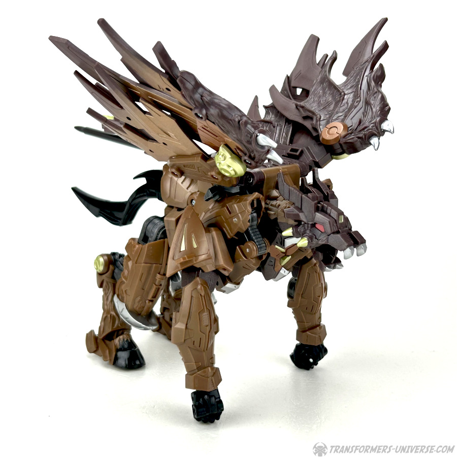 Somit unterm Strich: ein passender Biestmodus für den Prime der Bestien. Es gibt multiple Varianten, je nachdem wie man das mit den Beinen macht und die Flügel positioniert. Auch hier hätte ich etwas mehr Farbe begrüßt, aber ansonsten sehr schön.