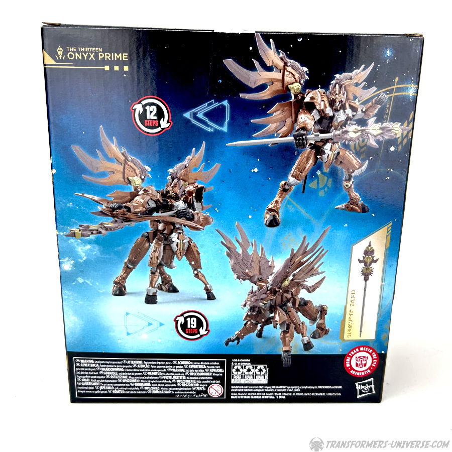 Anekdote am Rand: das Design von Onyx Prime stammt aus dem Buch Covenant of Primus und stellte ihn vierbeinig dar (was aber schwer zu sehen war, da er sich gerade aufbäumte). In den IDW Comics wurde er dann erstmal als zweibeiniger Bot gezeigt, was rückwirkend gesehen so eine Art Spoiler war, schließlich stellte er sich am Ende als Shockwave heraus, der den Platz des originalen Onyx eingenommen hatte. Dieser wiederum war im Flashback dann wieder vierbeinig. In seinen folgenden Auftritten in Earthspark und Transformers One hingegen war dann doch wieder zweibeinig unterwegs. Mit dieser Figur hier kann man es machen, wie man möchte.