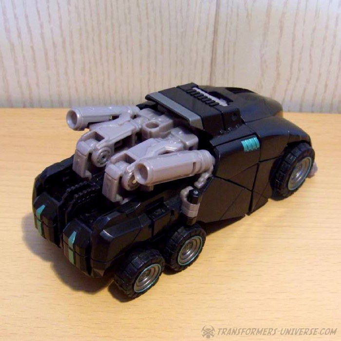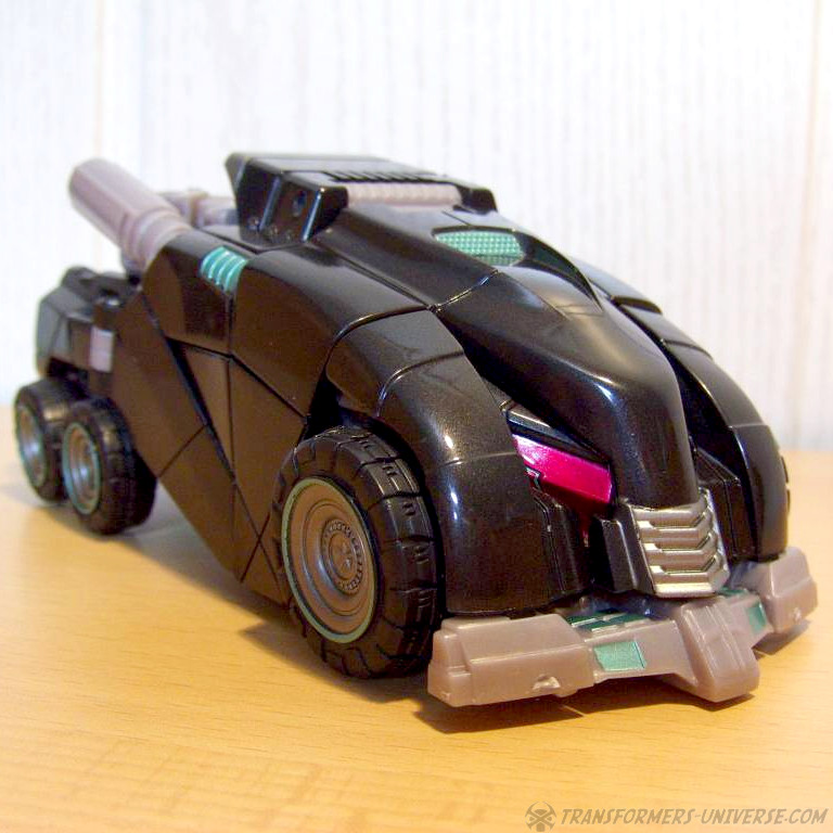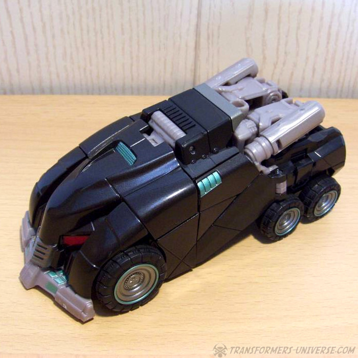 Ansonsten ist da natürlich nicht viel mehr; die Waffe kann man wie gewohnt oben anbringen, was wie gewohnt nix bringt und bescheuert aussieht. Verchromte Endrohre hätten hier vielleicht nicht geschadet, aber auch kein Muss um die Figur auch hier dunkel zu halten. Alles in allem ein sehr schöner Alternativmodus. Die Schnittlinien werden hier durch das schwarz nicht unbedingt besser verdeckt, aber das Fahrzeug hat ja sowieso eine Art Panzerplatten-Look, von daher keine Probleme.