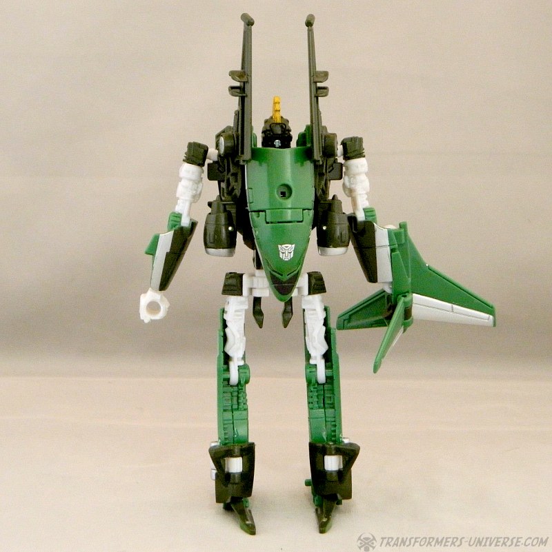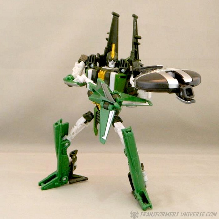 Bemerkungen: Air Raid war ein neuer Deluxe-Mold in der Dark of the Moon Reihe, allerdings bereits die VIERTE Figur mit dem Namen Air Raid in den Movie Toylines. Welche Verbindung dieser Air Raid mit den anderen Air Raids hat (wenn überhaupt) ist unklar, allerdings bezeichnete das Japanische Release ihn als einen der uralten Seekers (wie Revenge of the Fallen Jetfire), die für die Dynastie der Primes das Univerum nach leblosen Sternensystemen für den Sonnen-Ernter abgesucht haben.