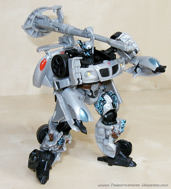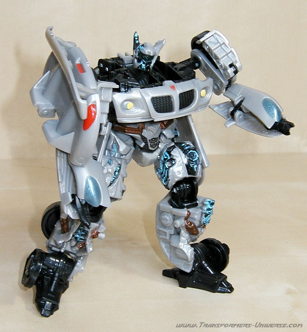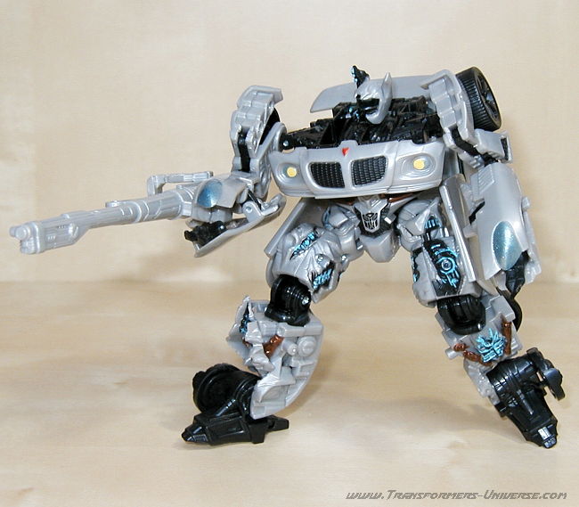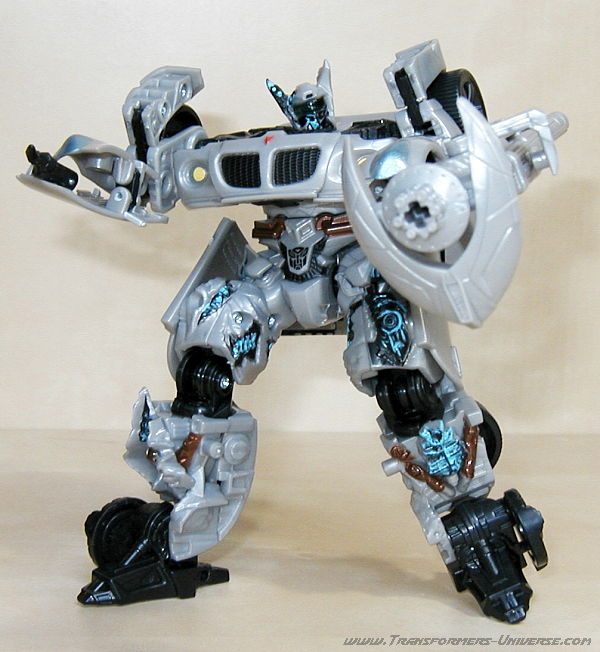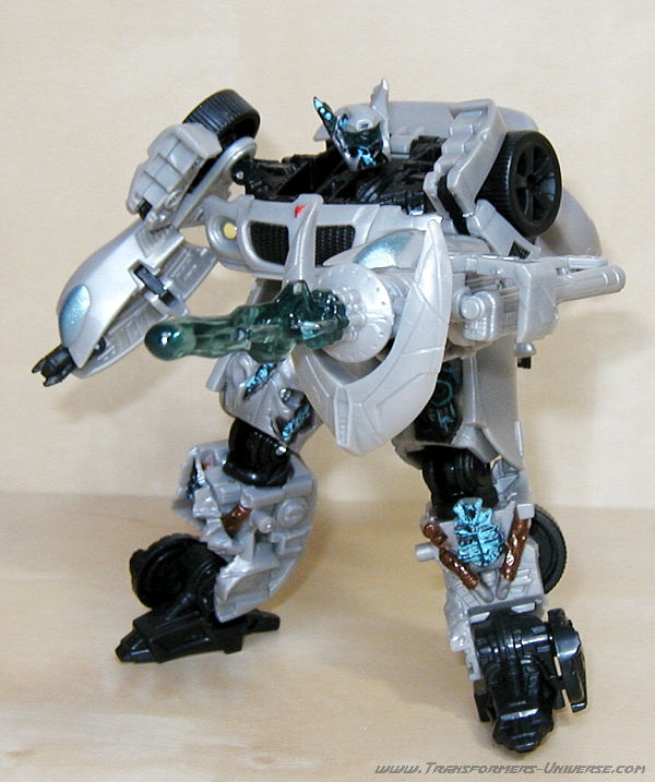 Als mechanische Wesen können die meisten Transformer eine gewaltige Menge an Schäden erleiden und sind trotzdem noch voll einsatzfähig. Autobot Jazz ist hier keine Ausnahme. Auch geschunden und angeschossen ist er immer noch bereit gegen die Decepticons zu kämpfen und die bösen Roboter so lange zu verprügeln, bis entweder er oder sie vernichtet sind. Er ist immer noch eine beeindruckende Kampfmaschine, ausgerüstet mit einer neuen Waffe die Sicheln aus purer, elementarer Energie verschießt, die scharf genug sind durch Titan zu schneiden.