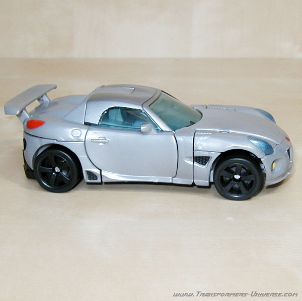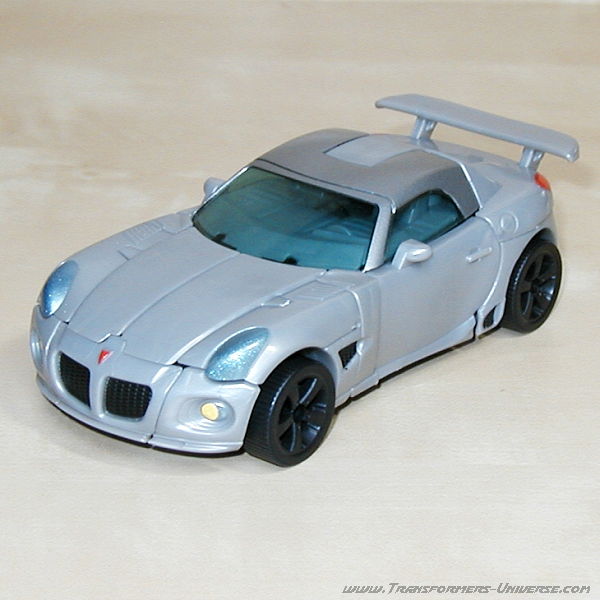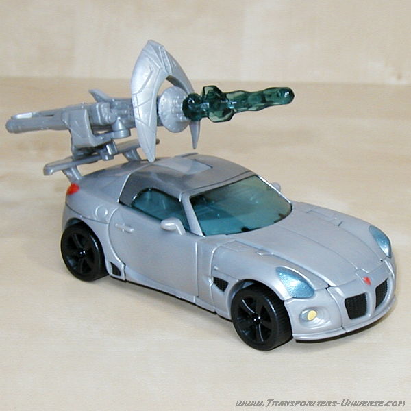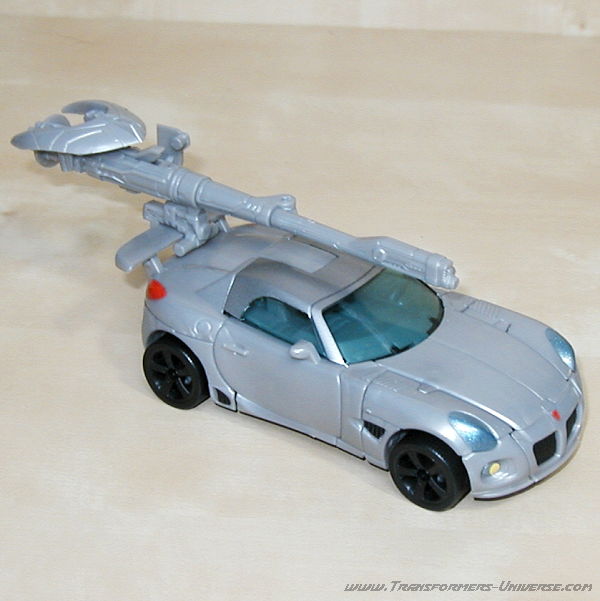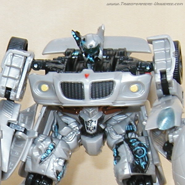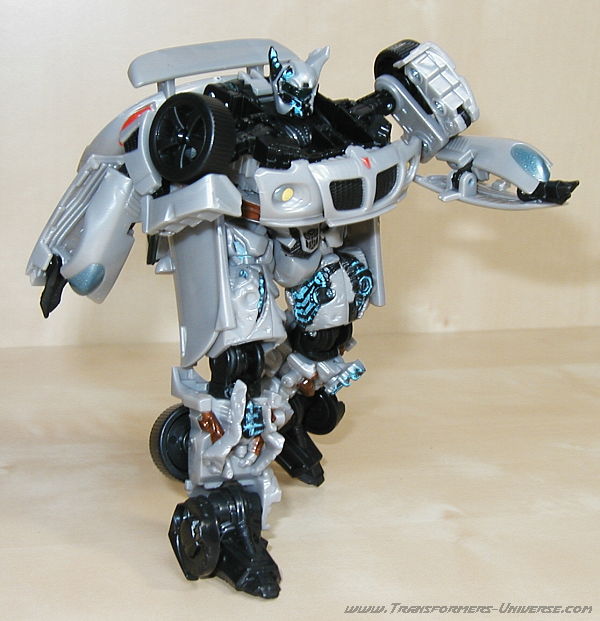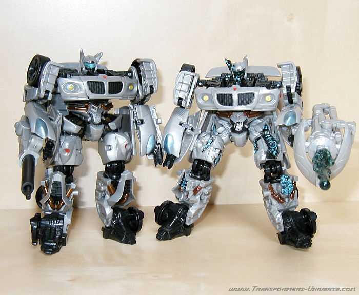 Von der Waffe mal abgesehen sind auch ein paar Veränderungen an der eigentlichen Figur vorgenommen worden. Jazz' Farbe ist ein wenig heller, dies ist aber vielleicht auch nur produktionsbedingt und nicht beabsichtigt. Außerdem zeigt er einskulptierte Kampfschäden, die in einem AllSpark blau gehalten sind. Ich weiß nicht was der Gedanke dahinter war. Die Schäden sind nur an Beinen und Kopf, im Automodus also nicht zu sehen.