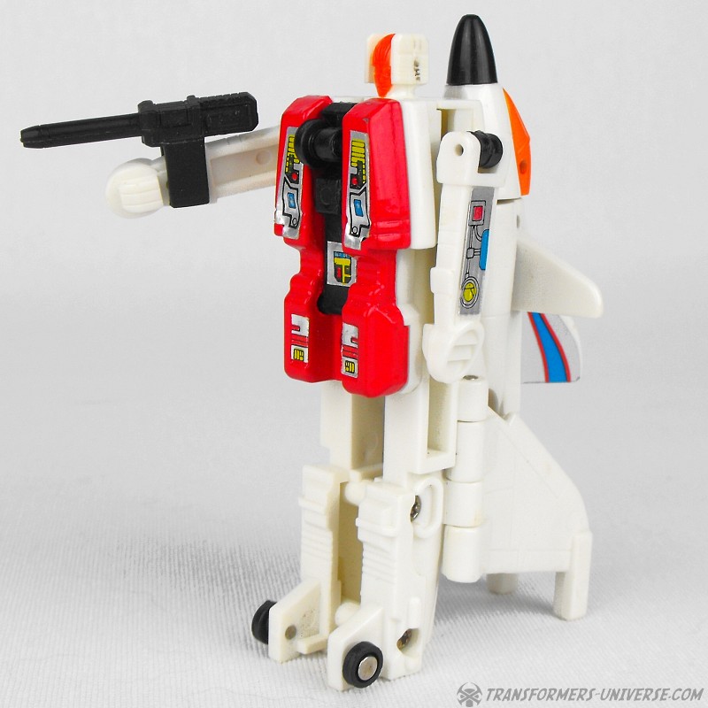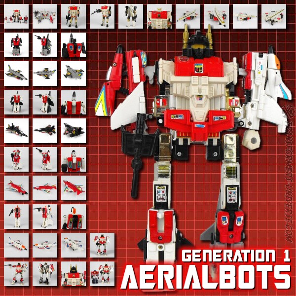Robotermodi: Die Aerialbots bestehen aus Silverbolt, dem großen Anführer, und vier kleineren Teammitgliedern namens Air Raid, Sky Dive, Slingshot und Fireflight. Die vier kleineren Roboter sehen sich allesamt recht ähnlich (bis auf die Farben) und haben so gut wie keine Beweglichkeit vorzuweisen außer in den Armen. Silverbolt ist in punkto Beweglichkeit kaum besser (was die Arme angeht sogar schlechter), hat aber einen edlen Look der ihn etwas cooler macht als seine Teamgefährten.