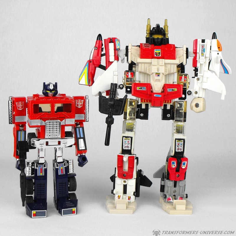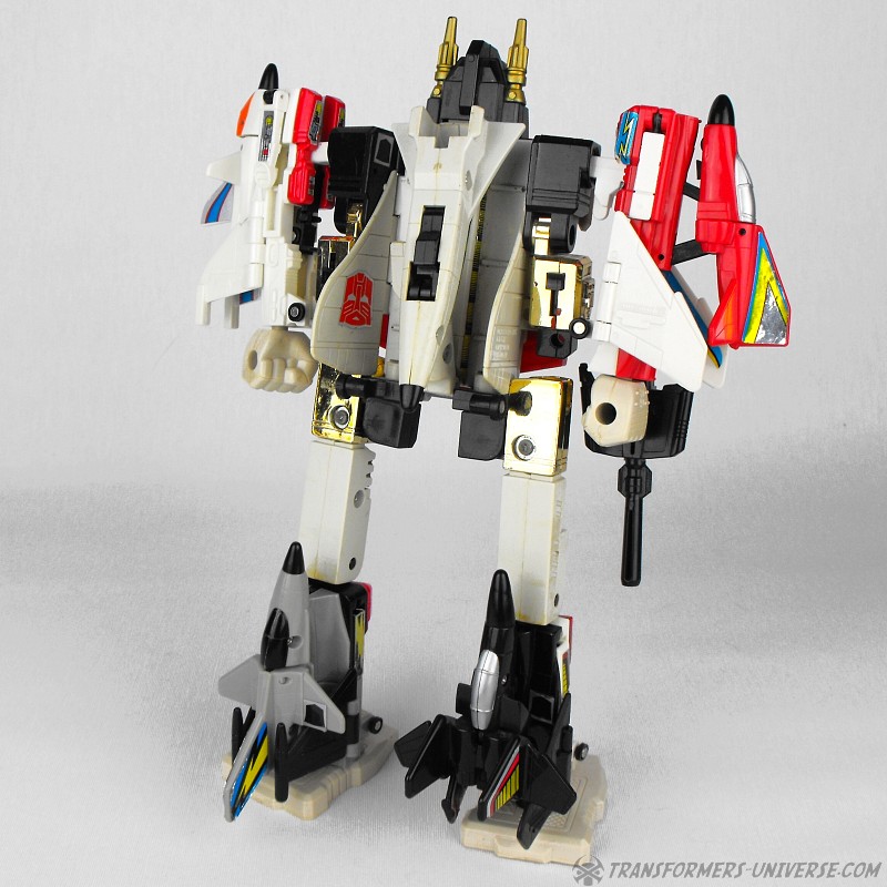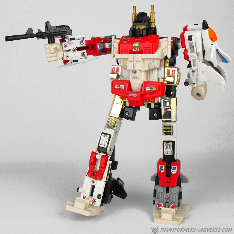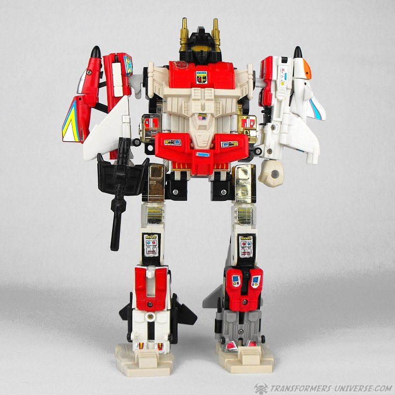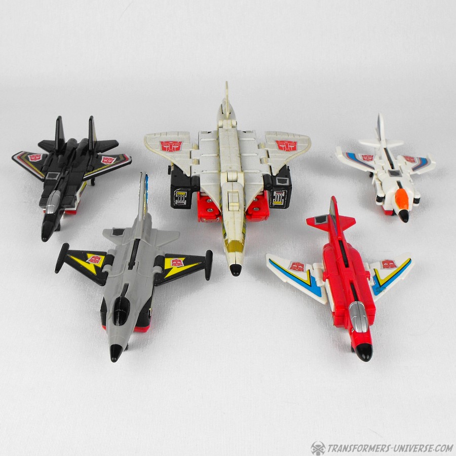 Bemerkungen: Im Jahr 1986 bekamen die Autobots endlich dringend benötigte Luftunterstützung in Form der Aerialbots. In der zweiten Staffel des G1 Cartoons bekamen die fünf sogar einiges an Charakterisierung mit, wenn sie auch danach in Staffel 3 in den Hintergrund traten und nur noch als eine Art schnelles Einsatzkommando auftraten. Immerhin durften sie aber in die Vergangenheit reisen und zusehen wie aus Orion Pax Optimus Prime wurde. Und auch wenn die einzelnen Roboter niemanden umhauen dürften, so sind sie doch coole Jets und Superion ist ein hervorragender Gestaltroboter. Meiner Meinung nach das Beste Autobot Gestaltteam aus G1.