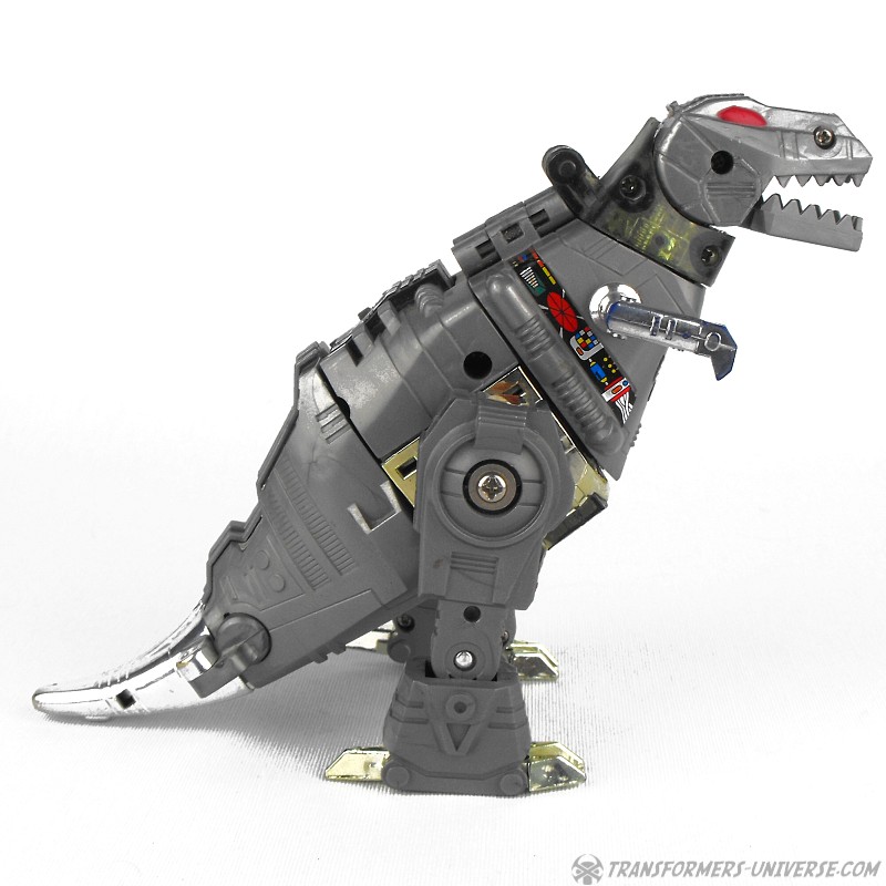 Bemerkungen: Ich denke nicht dass ich noch viel über Grimlock den Charakter sagen muss, oder? Wer ihn nicht kennt ist entweder ein kompletter Neuling in der Welt der Transformers oder benötigt mehr Hilfe, als ich hier in diesem Review in der Lage bin zu geben, sorry. Was die Figur angeht, sie begann ihre Existenz als Teil von Takaras Diaclone Dinosaur Robo Reihe bevor sie für die Transformers Serie lizensiert wurde. Grimlock war damals ein Liebling der Fans (Charakter wie Spielzeug) und ist es auch heute noch, quer durch seine Inkarnationen. Das Original G1 Spielzeug ist immer noch eine der besten Figuren jener Zeit und bis auf ein paar Kleinigkeiten braucht es sich auch heute nicht verstecken. Außerdem ist keine echte Transformers Sammlung komplett, wenn kein Grimlock dabei ist.