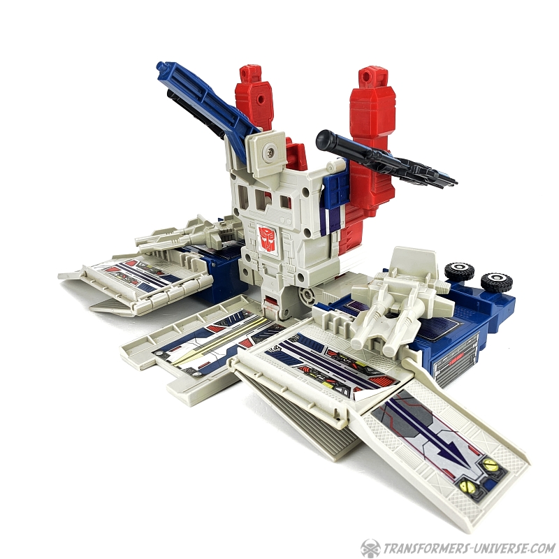 Die bessere Robotervariante ist Optimus Primes Supermodus, wo er sich mit seinem Anhänger verbindet. Massiv und schwer bewaffnet ist Powermaster Optimus Prime nun groß genug um es mit den Transformern aufzunehmen, die ihn bisher überragt haben. Er ist zwar auch hier nicht sonderlich beweglich, aber macht das mit seinem mächtigen Look wieder wett.
