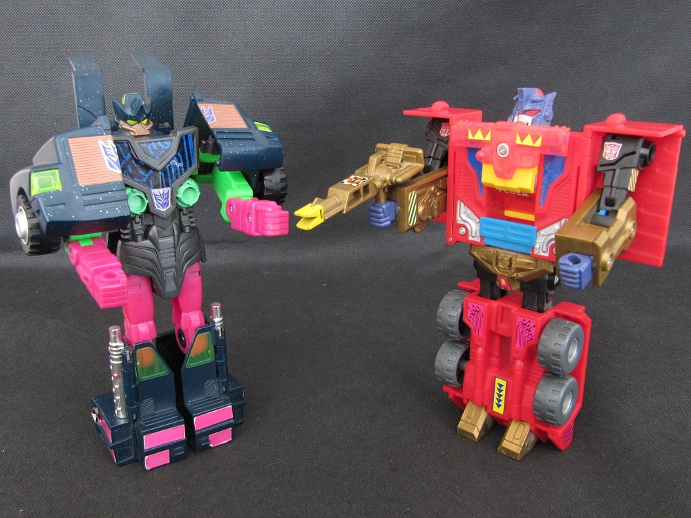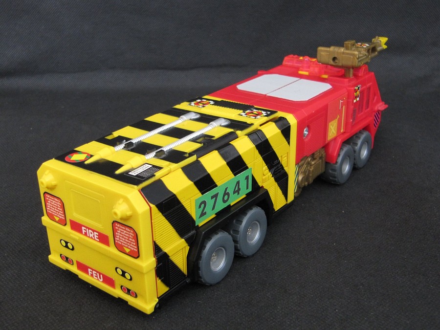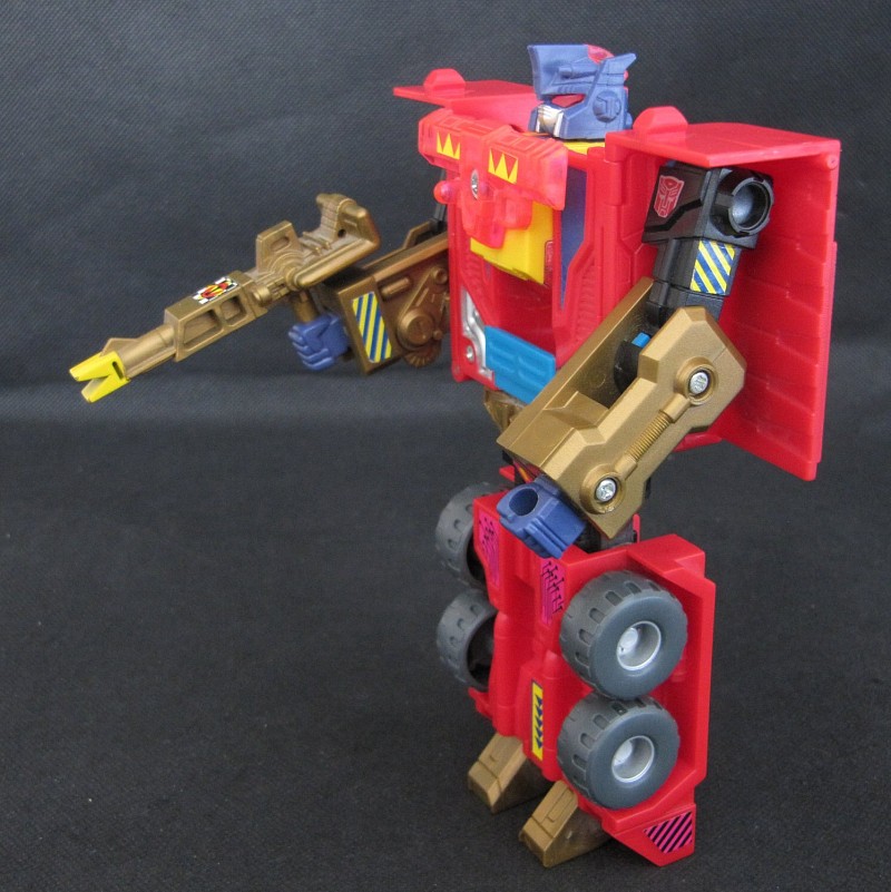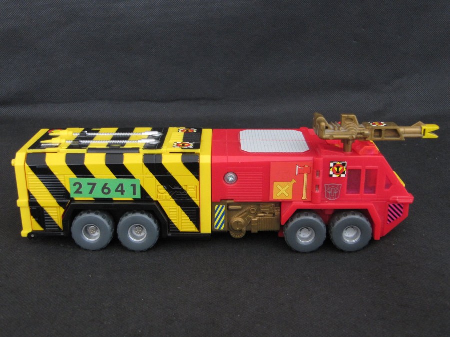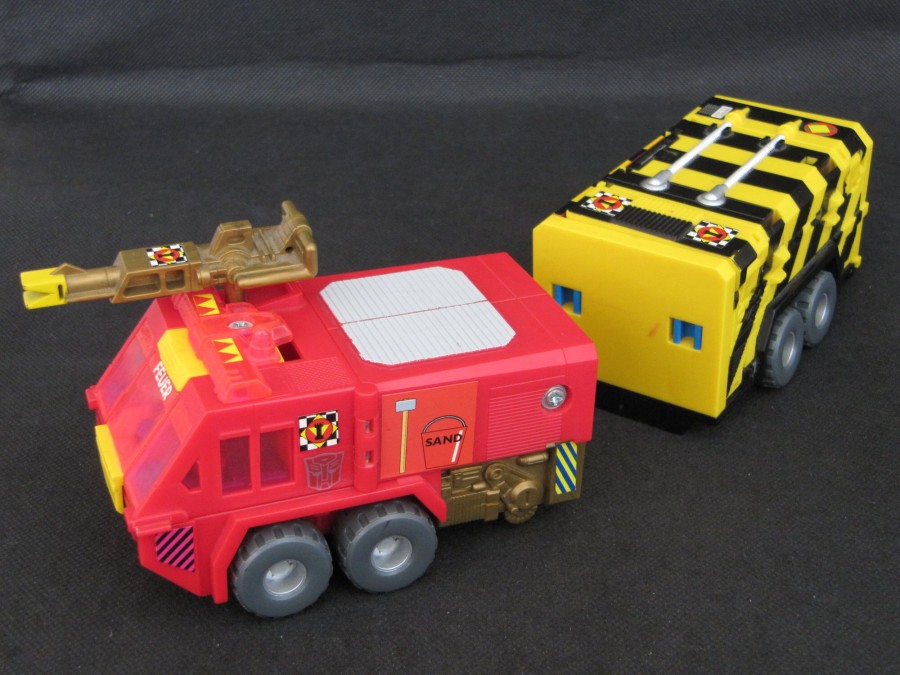 Bemerkungen: Pyro, auch unter dem Namen Spark erschienen, war eine der finalen Figuren der sogenannten "Euro-G1" Reihe, auch manchmal G1.5 genannt, also von den Figuren, die nur in Europa in den Jahren 1991 bis 1993 erschienen. Da wir uns bereits im Übergang zur Generation 2 befanden, trägt Pyro bereits ein G2 Autobot Symbol, aber den Schriftzug "Generation 2" sucht man vergeblich auf der Packung. Die Figur ist berüchtigt für ihre Probleme mit dem sogenannten Goldplastiksyndrom, da mehrere Teile der Figur komplett aus Goldplastik und damit extrem zerbrechlich sind.