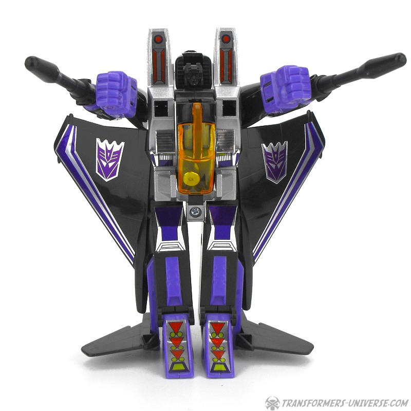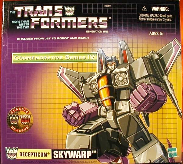 Bemerkungen: Skywarp ist eine Neufärbung von Starscream, das volle Review der Figur findet ihr dort. Hier nur ein paar Bemerkungen. Dieser Skywarp hier ist eine Neuauflage von 2003, nicht das Original, aber die einzigen Unterschiede sind die Packung und die Tatsache dass Skywarps Laserkanonen hier etwas größer sind um den heutigen Sicherheitsbestimmungen bei Spielzeugen zu genügen.