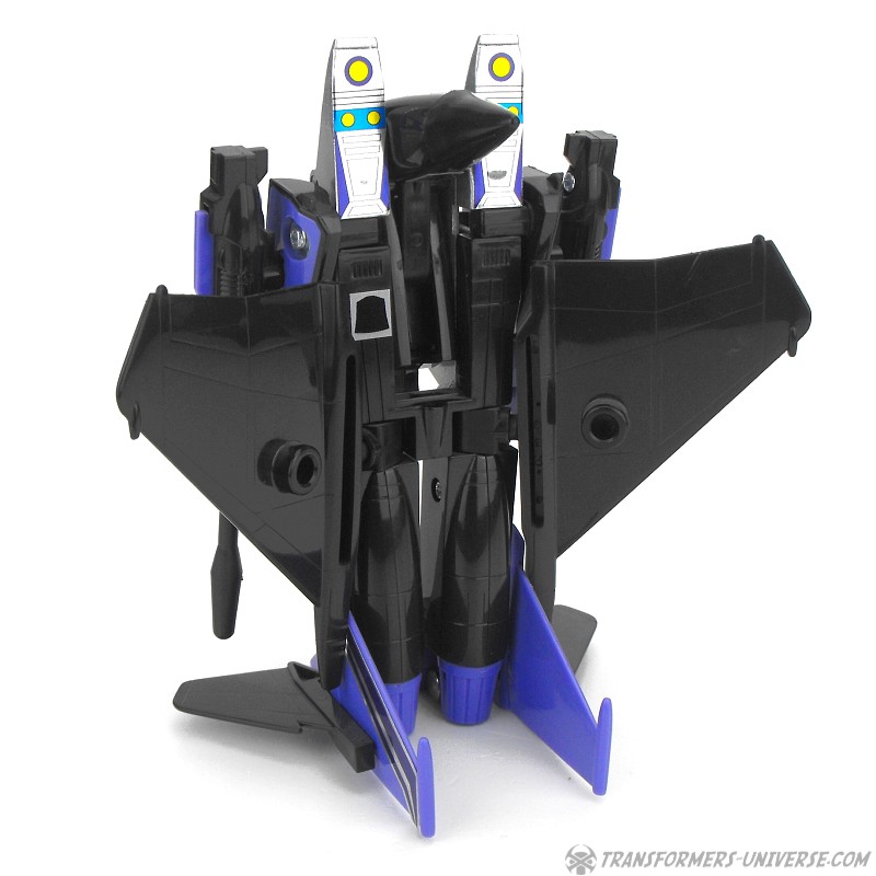 Skywarps Farben machen ihn zu einem perfekten Abbild seiner Cartoon Figur. Anders als seine Brüder Thundercracker und Starscream bekam Skywarp im Cartoon nie so etwas wie eine Persönlichkeit, sein einziger Charakterzug war eine leichte Rivalität mit seinen Seeker-Kollegen. Trotzdem, als einer der drei Original Seekers ist er definitiv ein Pflichtkauf für jeden G1-Sammler. Und die neue Packung sieht ein gutes Stück besser aus als die Alte. Was will man mehr?