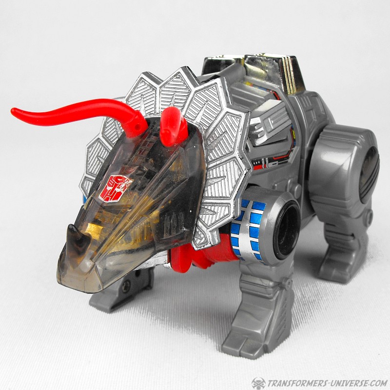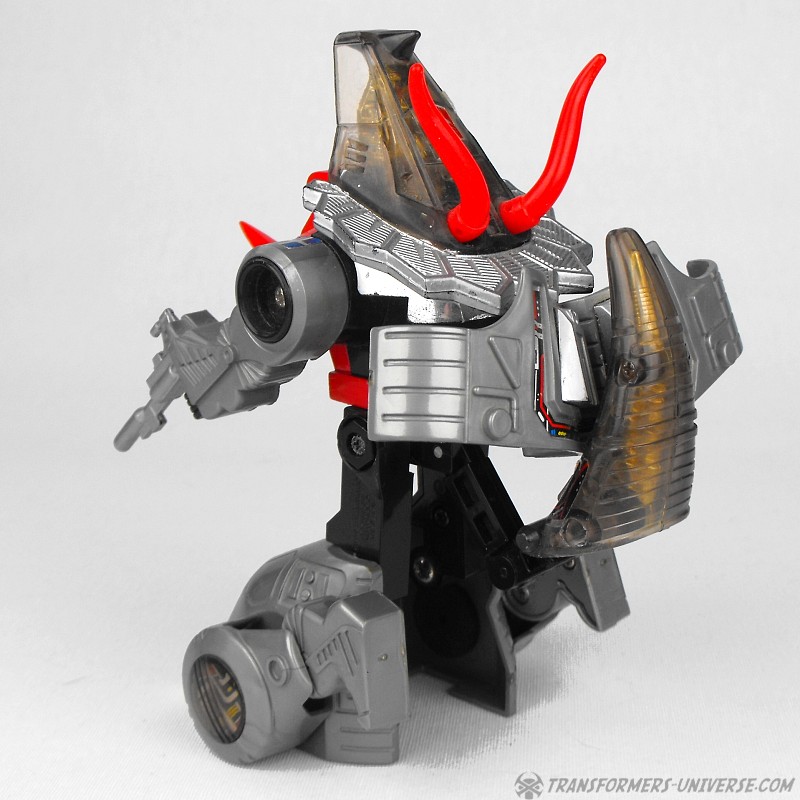 Bemerkungen: Muss ich wirklich noch groß was über die Dinobots und Ihre Stellung in der Transformers Mythologie erzählen? Nun, sofern ihr nicht zu diesen jungen Hüpfern gehört, die vor ihrem kurzen Gastauftritt in „Ära des Untergangs“ noch nie was von den DInobots gehört haben, dann wohl eher nicht. In einer Gruppe die jetzt nicht unbedingt für ihren Pazifismus bekannt ist, ist Slag der gewalttätigste. Meine Lieblingsstory mit ihm stammt aus den alten Marvel UK Comics, Titel „the 4.000.000 year glitch“. Dort leidet Slag an periodisch auftretenden unkontrollierbaren Wutanfällen und die anderen Dinobotos müssen ihn irgendwie im Zaum halten, damit der gerade zu Besuch befindliche Autobot Kommandant Optimus Prime nichts mitkriegt. Slapstick Komödie, klar, aber für mich die definitive Slag Story. Slag ist außerdem der Dinobot, der heute eigentlich nur noch Slug oder Snarl heißt, weil seit Beast Wars der Begriff „Slag“ in den Stories als Schimpfwort benutzt wird und er somit auch nicht mehr außerhalb der Stories benutzt werden darf, sonst könnte sich ja jemand beleidigt fühlen… oder so ähnlich, glaube ich.