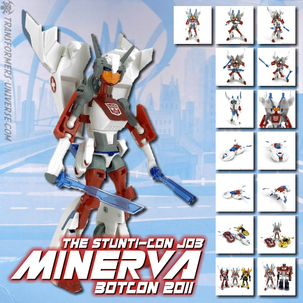 Bemerkungen: Minerva war einer der Hauptcharaktere in der japanischen Masterforce Serie und gehört vermutlich zu den bekannteren der Japan-exklusiven Charaktere. Ihr Auftritt im Botcon 2011 Comic „The Stunti-Con Job“ beschränkt sich darauf, dass man sie kurz im Publikum gesehen hat, aber bei der Live-Lesung des Skripts auf der Convention wurde ihre Rolle etwas erweitert. Ihr Tech Spec beschreibt sie außerdem als Ratchets Schützling und dass sie schon auf der Erde war, wo sie sich mit einem Teenager-Mädchen aus Quebec angefreundet hat (übersetzt: die originale Minerva).