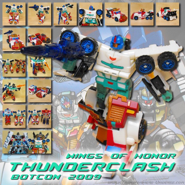Bemerkungen: Thunderclash war der Anführer der ersten Autobot Elite Garde Einheit im Botcon Comic und wurde dort als inspirierende, charismatische Authoritätsperson gezeigt. Er hat während des Kampfes zwar nicht allzu viel gemacht, hat seinen Kameraden aber Mut gegeben und nie die Hoffnung verloren.