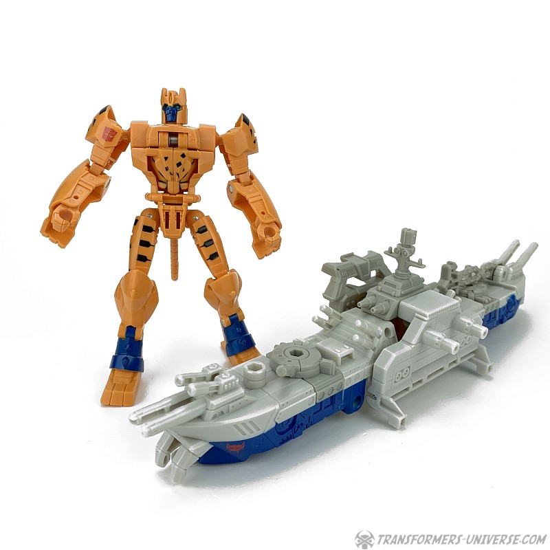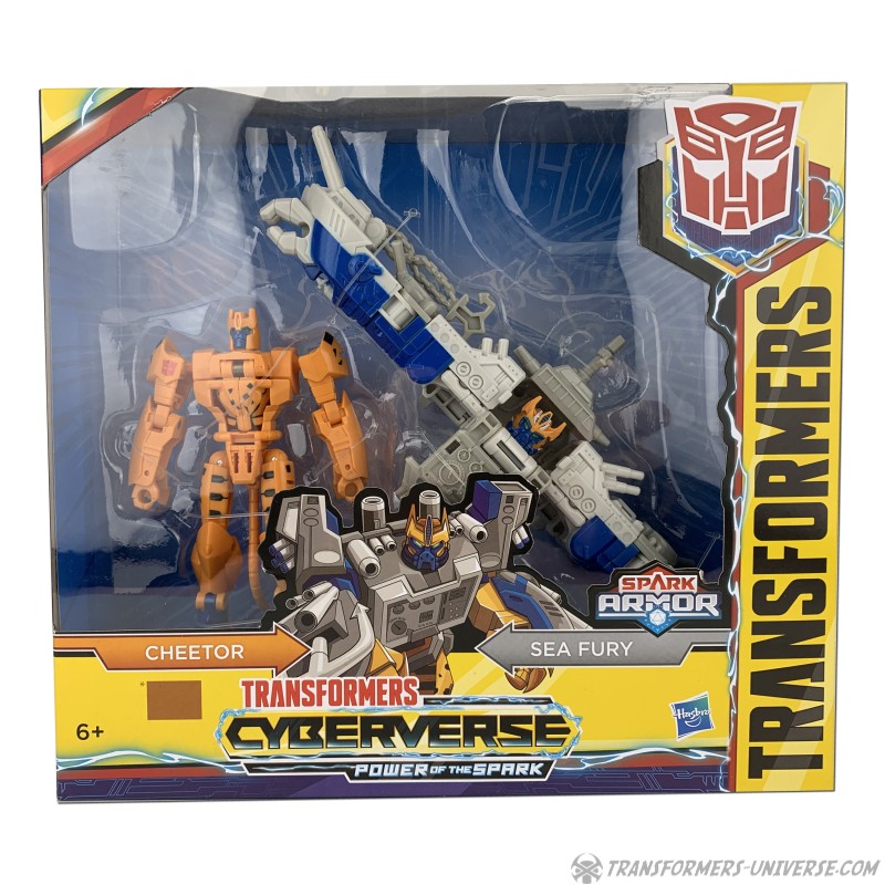 Vorwort: Hey, erinnert ihr euch noch an diesen populären Beast Wars Charakter Cheetor? Der junge Heißsporn , der sich in einen Gepard verwandelt? Wisst ihr wie wir diesen Roboter, der sich in einen Geparden verwandelt, noch besser machen können? Mit einem Schlachtschiff! Nein, wartet, hört zu: ein Schlachtschiff, das etwa genauso groß ist wie der Gepard und als Rüstung getragen werden kann! Toll, oder? So geht das! Hier kommt er also: Cyberverse Spark Armor Cheetor und sein anziehbares Schlachtschiff, die Sea Fury! Los geht’s!