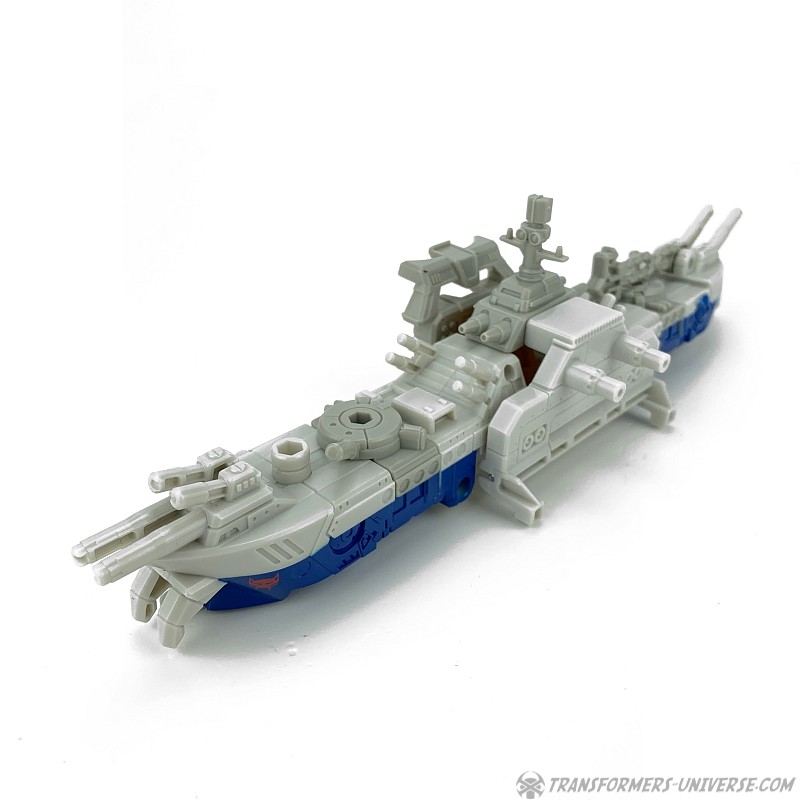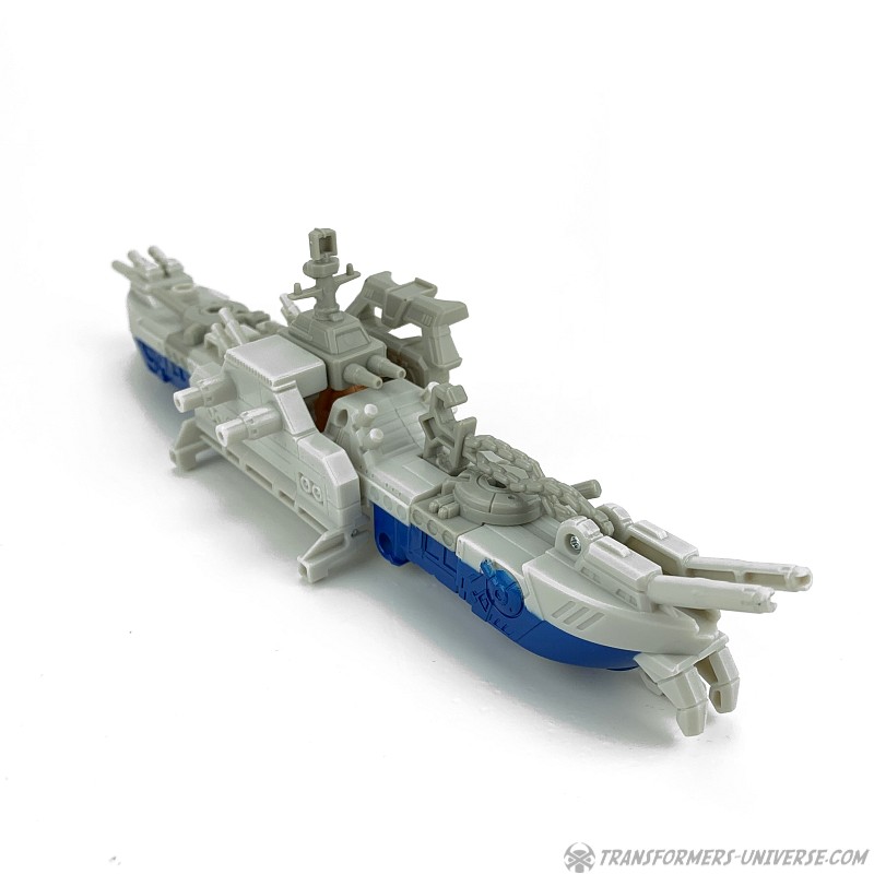 Zubehör: Die Sea Fury, Cheetors Schlachtschiff-Zubehör, gab es schon mal zusammen mit Spark Armor Bumblebee (weil ein kleines Auto, dass ein Schlachtschiff trägt, so ziemlich gleichwertig ist mit einem Geparden, der ein Schlachtschiff trägt, denke ich). Lediglich der vorher rote Rumpf ist jetzt blau. Das Schlachtschiff sieht als solches ganz nett aus, lediglich die großen Platten am Mittelteil schaffen es nicht so ganz, sich in die schlanke Schiffslinie zu integrieren. Somit ein gut aussehendes Schlachtschiff.