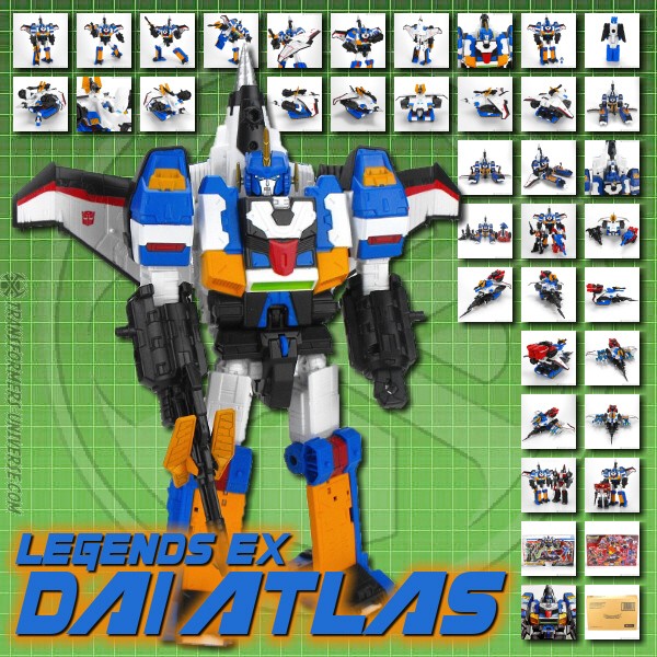 Partner / Zubehör: Dai Atlas ist ein Headmaster, somit wird sein Kopf zu einem separaten Roboter, einem sogenannten Titan Master. Da Dai Atlas im Original nie ein Headmaster war, hat der kleinere Roboter keinen eigenen Namen. Es ist ein Standard Titan Master, viel mehr kann man dazu nicht sagen.