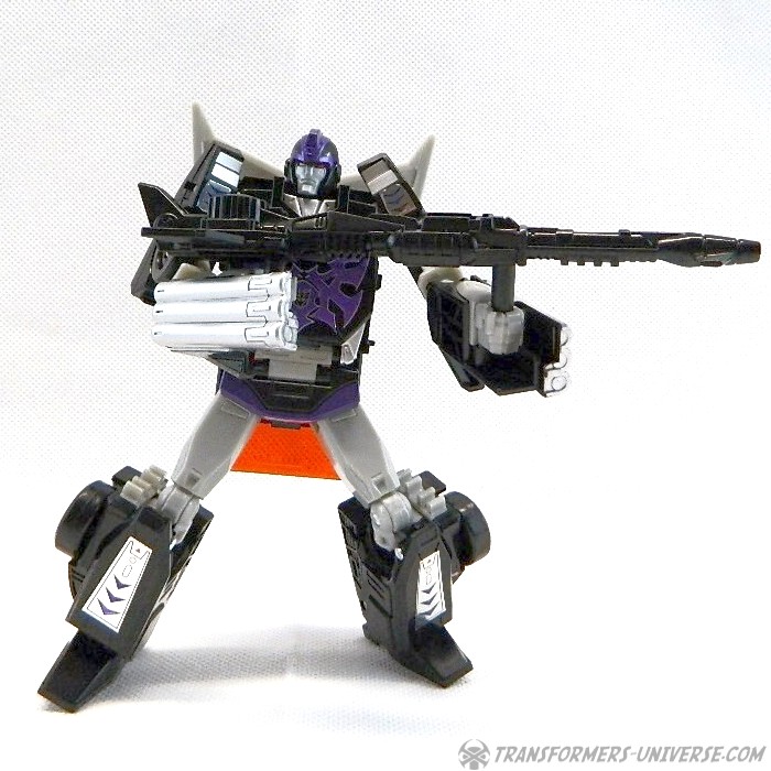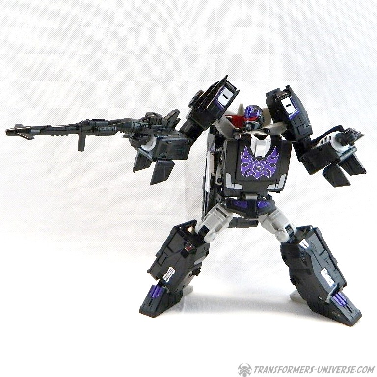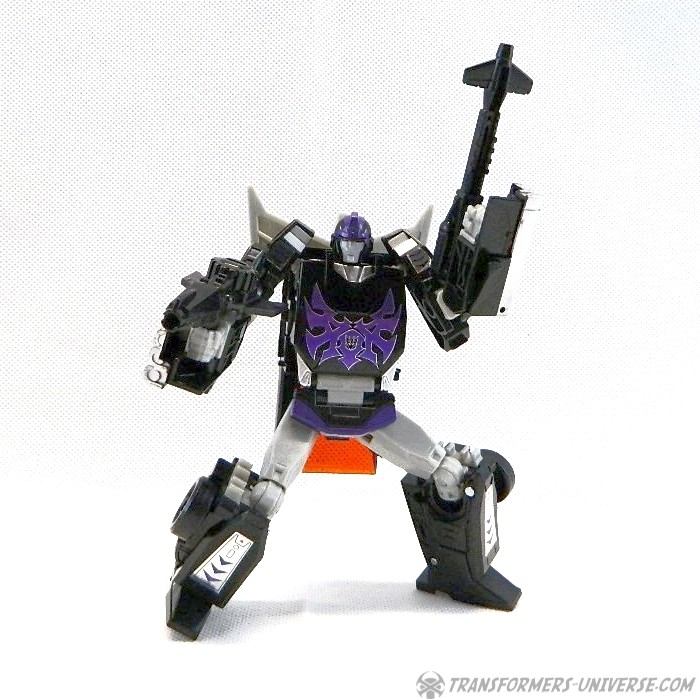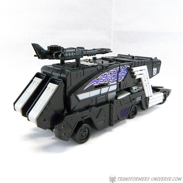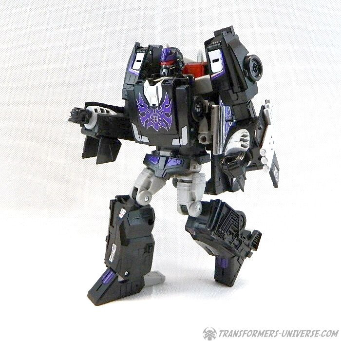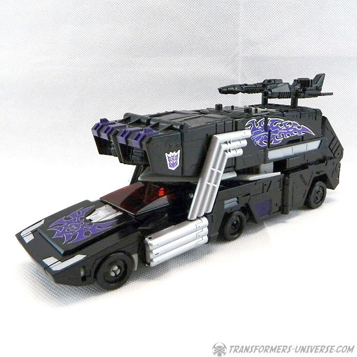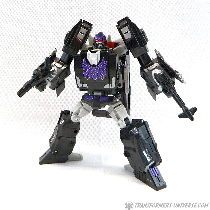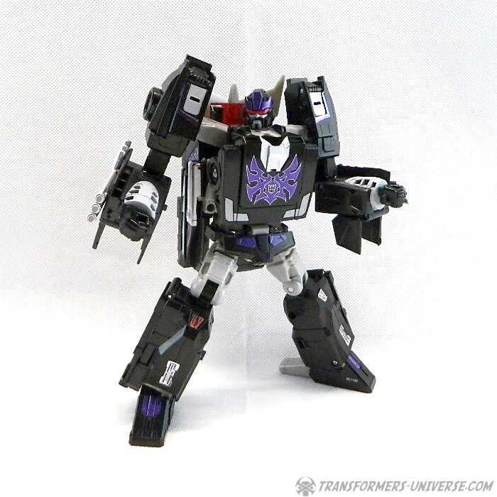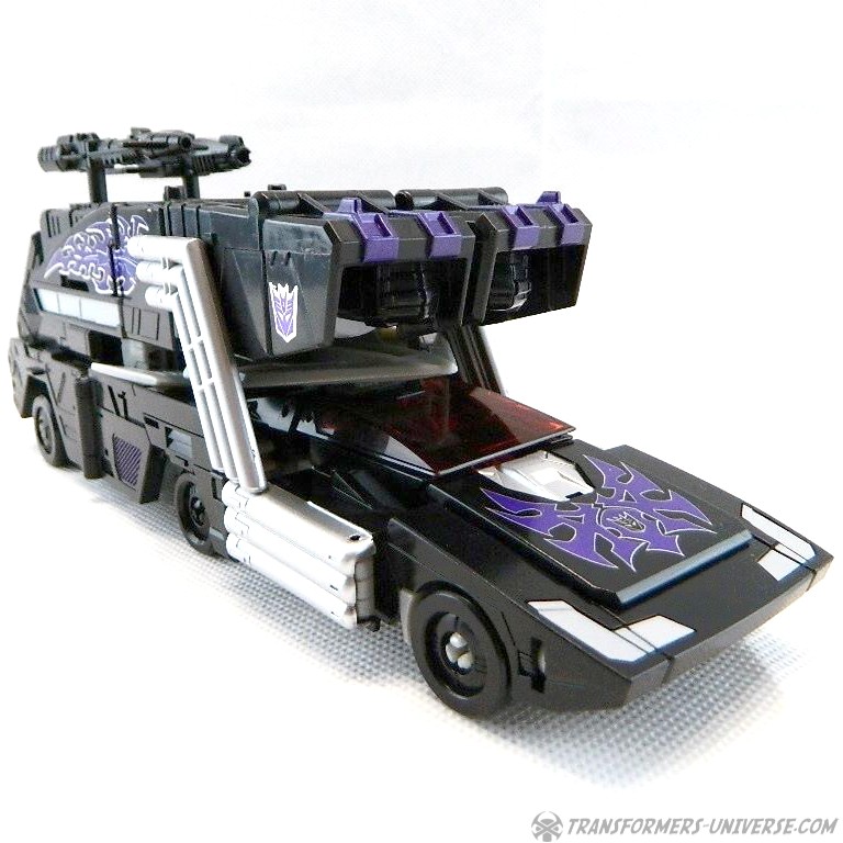 Bemerkungen: Rodimus Unicronus ist ein Repaint (mit neuem Kopf) von Power of the Primes Rodimus Prime, den ich bereits rezensiert habe. Die neuen Farben der Figur sind an Shattered Glass Rodimus angelehnt, aber in diesem Fall stammt der Charakter nicht aus einem anderen Universum, sondern stellt eine Version von Rodimus Prime dar, die von Unicron korrumpiert wurde. Der neue Kopf (im Supermodus) hat einen Bart und eine Sonnenbrille, was von vielen als Hommage an Motörhead Sänger Ian "Lemmy" Kilmister gedeutet wird, der wenige Jahre vor Erscheinen dieser Figur verstarb. Rodimus Unicronus hat eine Matrix des Chaos dabei, anstatt der Matrix der Führerschaft der Originalfigur, ist ansonsten aber vom Zubehör her identisch. Der kleinere Roboter wurde als "Nemesis Hot Rod" bezeichnet.