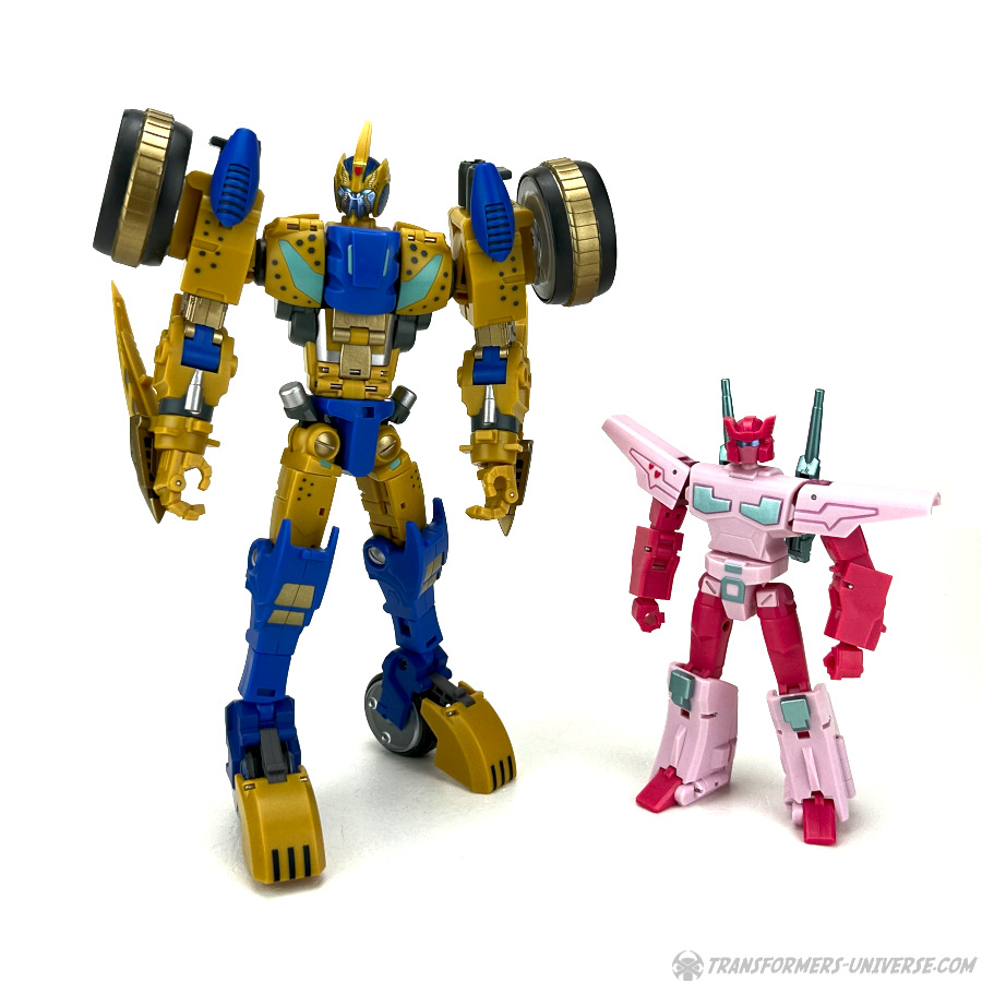 Vorwort: Erinnert Ihr Euch noch, wo Cheetor – noch in Fahrzeugform – zusammen mit der cybertronischen Popsängerin Rossana unterwegs war, um … irgendwas zu machen? Nein? Nun, vielleicht weil das nie passiert ist. Die beiden kamen sich nur ein einziges mal nahe, als sie in einem Club-exklusiven Comic mal im selben Paneel auftauchten. Aber Mastermind Creations brachte trotzdem ein Doppelpack dieser beiden Figuren heraus und die schauen wir uns heute an. Also, los geht’s!