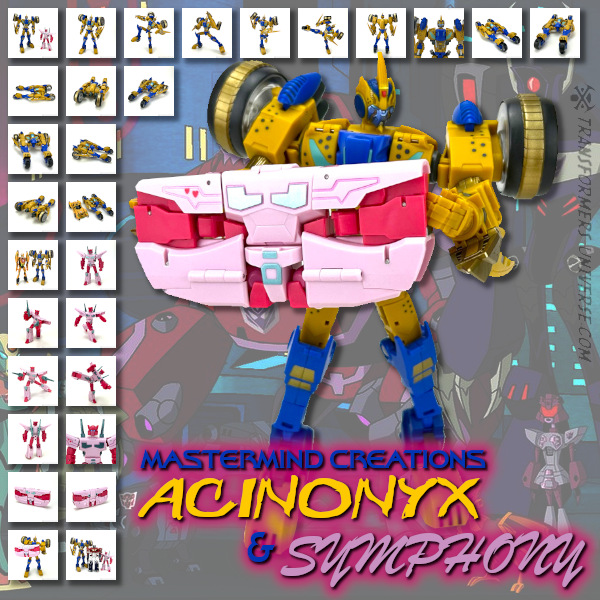 Symphony – Robotermodus: Symphony basiert auf dem Animated Charakter Rosanna, die im Allspark Almanach und einem TF Club exklusiven Comic vorkam, sowie vermutlich in der nie produzierten vierten Staffel von Transformers Animated. Sie basierte (sehr locker) auf dem Kassetten-Bot Design, das für Eject und Rewind verwendet wurde, somit war es jetzt kein großer Schritt, eine Third Party Figur von Rewind in eine Third Party Version von ihr umzuwandeln.