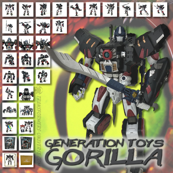 Vorwort: Die meisten Third Party Firmen bringen früher oder später einen Optimus Prime heraus, aber in letzter Zeit sehen wir auch eine ganze Reihe von Optimus Primals. Eine der ersten Firmen war Generation Toy, die uns Gorilla gaben, eine mehr oder weniger Masterpiece-große Version des Maximal Anführers. Also, bereit sich zum Affen zu machen? Los geht’s!