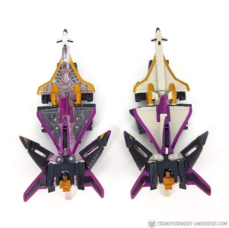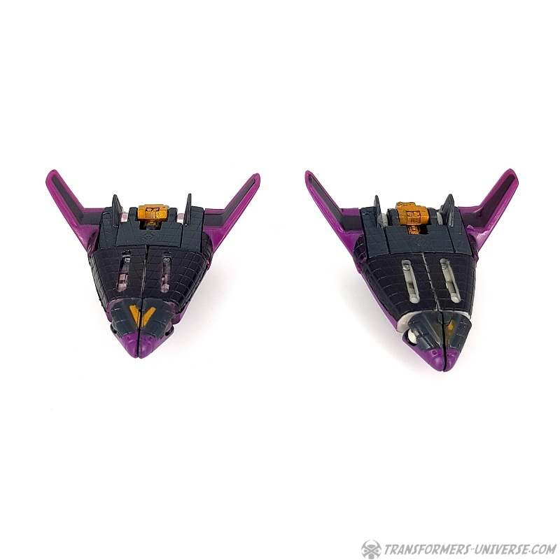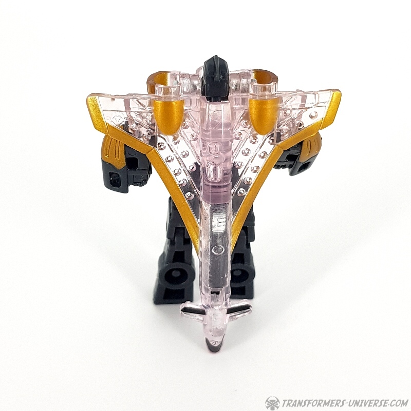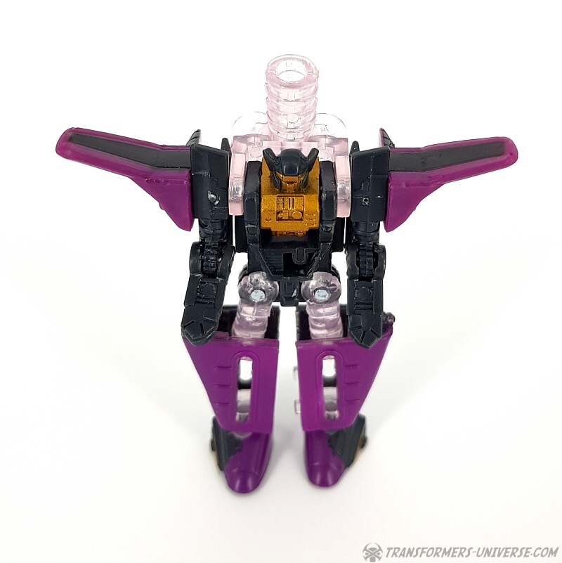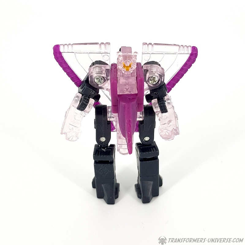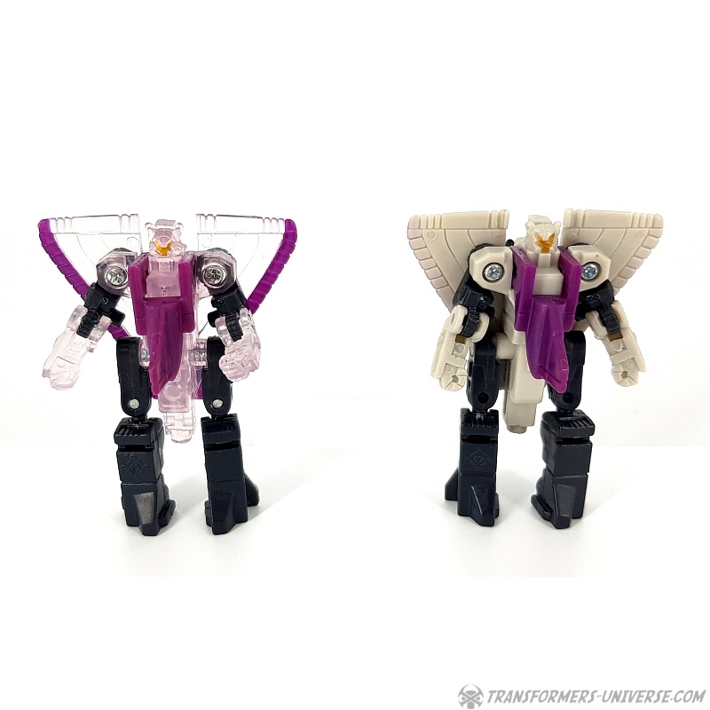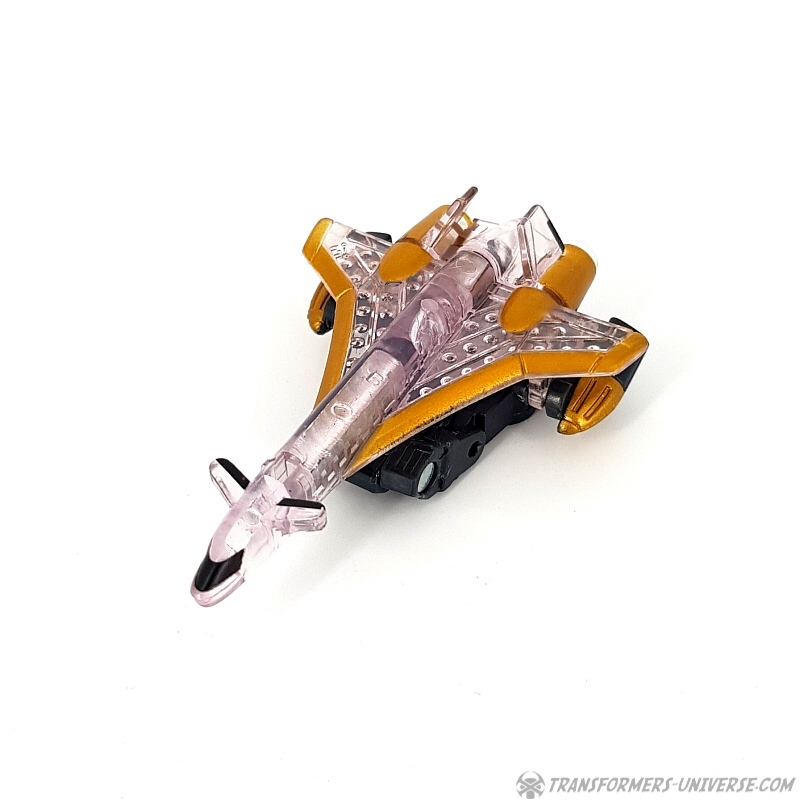 Bemerkungen: Japanische Transformers Fans lieben Mini-Cons (oder Microns, genauer gesagt), somit ist es wenig überraschend, dass es in der Micron Legends Reihe - Takaras Version von Transformers Armada - sogar noch mehr Mini-Cons gibt als in ihrem westlichen Gegenstück. Und eines der beliebtesten Teams sind diese Jungs hier, die ursprünglich als das Armada Air Defense Team rauskamen, bevor sie ein "böses" Repaint in Form des Armada Air Assault Teams bekamen. Beide findet Ihr bereits hier auf der Seite, genau wie das X-Dimension Air Defense Team. Hier also nichts wirklich Neues, einfach drei kleine Mini-Cons, die zu Jets transformieren und sich zu einem großen Schwert kombinieren, hier als Dark Saber bekannt. Der Hauptunterschied zwischen der Hasbro Armada und der Takara Micron Legends Version ist, dass Takara hier transparente Teile eingesetzt hat, plus ein paar minimale Farbdifferenzen.
