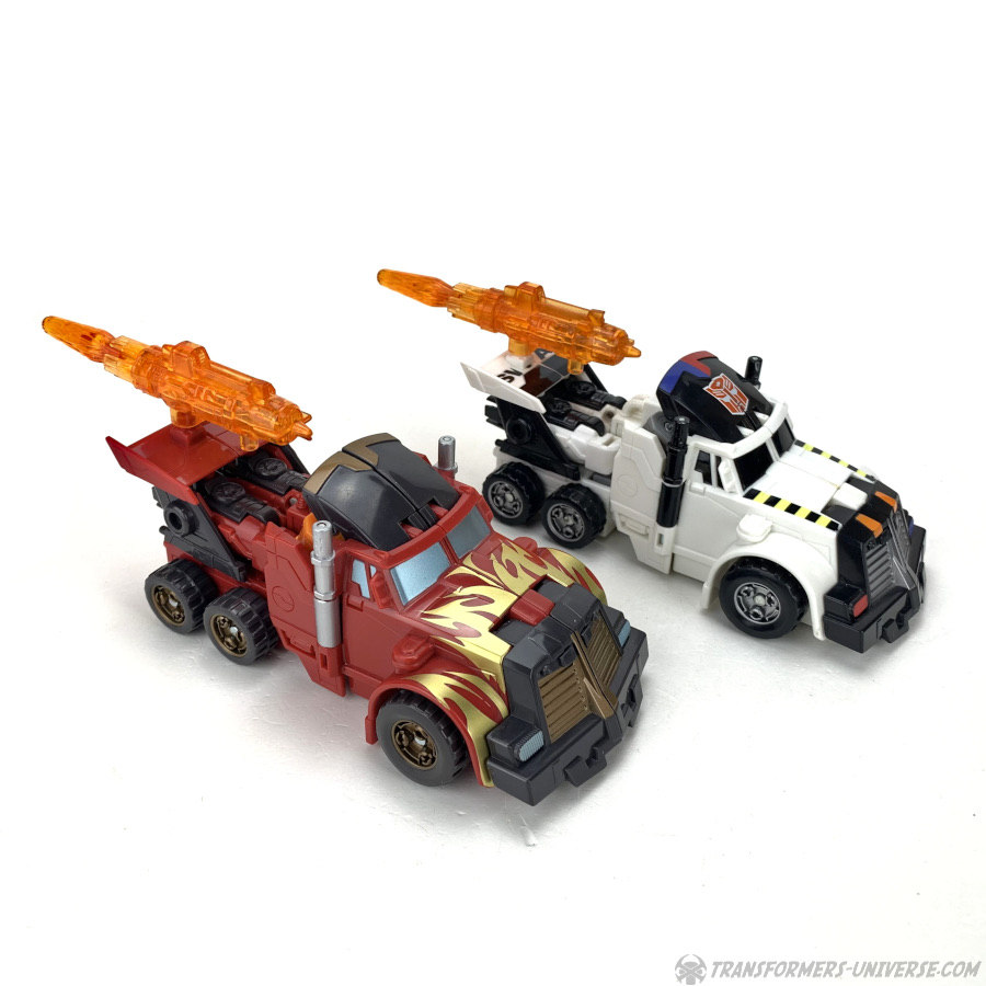 Vorwort: Okay, aufgepasst! In Energon ist Prowl ein blauer Formel 1 Wagen der aussieht wie Mirage, während Mirage ein Boot ist und ein Decepticon. Fangen wir gar nicht erst mit Downshift an, der aussieht wie Wheeljack. Und dann wäre da dieser weiße Polizei-Bot, der sowas von wie Prowl aussieht, aber Checkpoint heißt. Und jener Checkpoint, der aussieht wie Prowl, trägt den Körper von Rodimus (der weder Hot Rod noch Hot Shot ist) und kam im Doppelpack mit einem Prowl, der wie Mirage aussieht. Alles kapiert? Gut, dann geht’s los!
