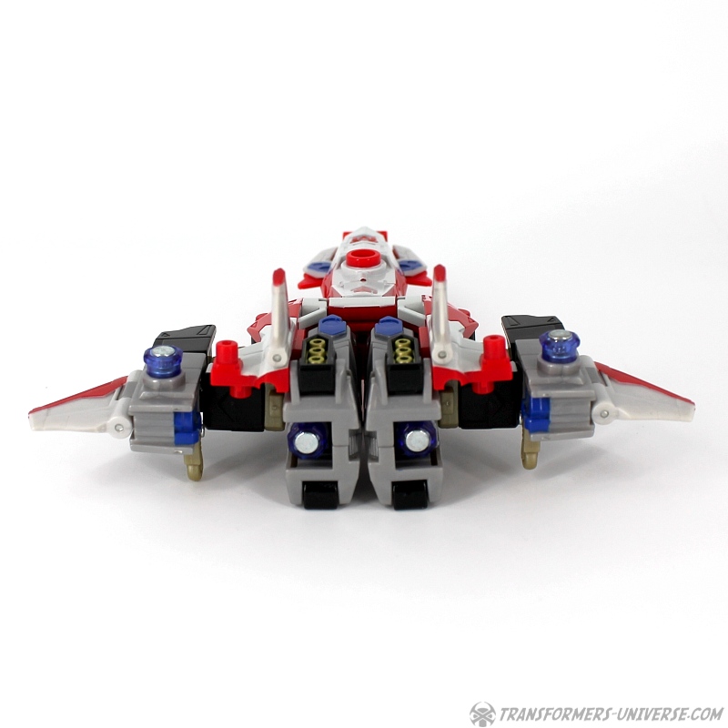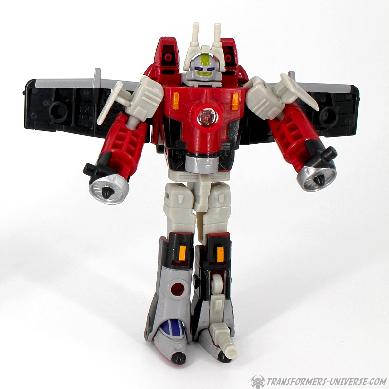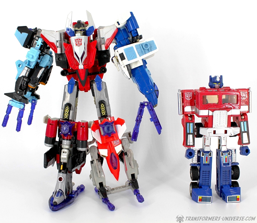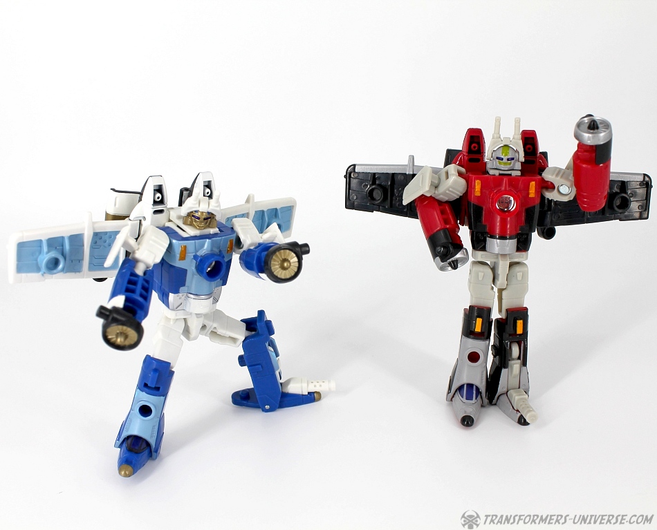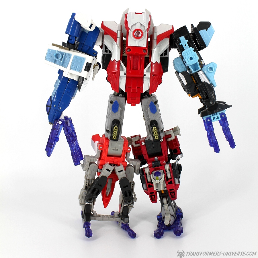 Bemerkungen: Takara haben natürlich ihre eigene Version von Energon Superion Maximus in Ihrer Superlink Reihe herausgebracht und anders als bei Hasbro hatte Takara tatsächlich noch die Rechte an den (meisten) Originalnamen der Aerialbots. Hier also haben wir Afterburner, Air Rider, Firebolt, Skydive und Sling, die Aerialbots, die sich zum mächtigen Superion kombinieren (ganz ohne Maximus).