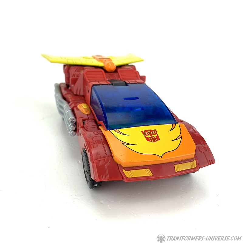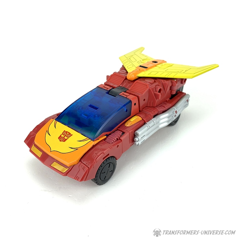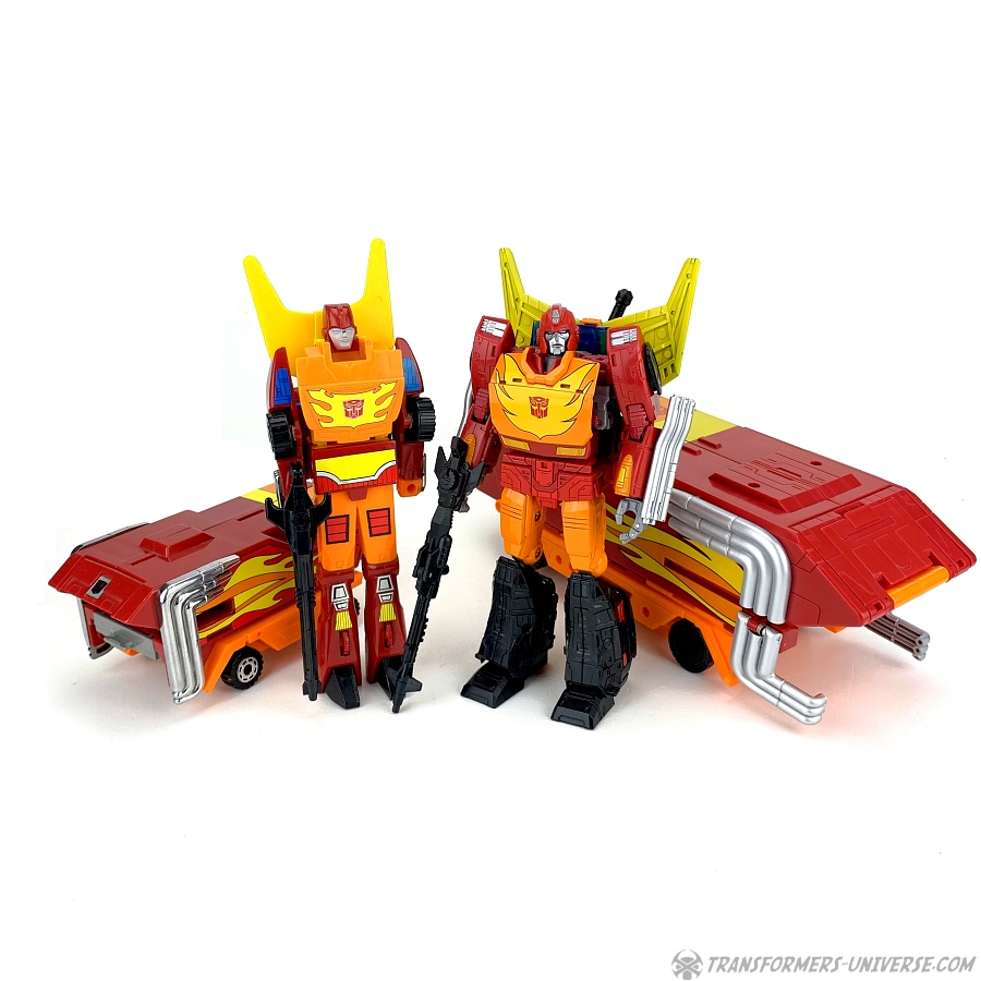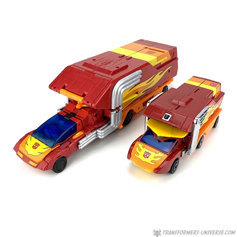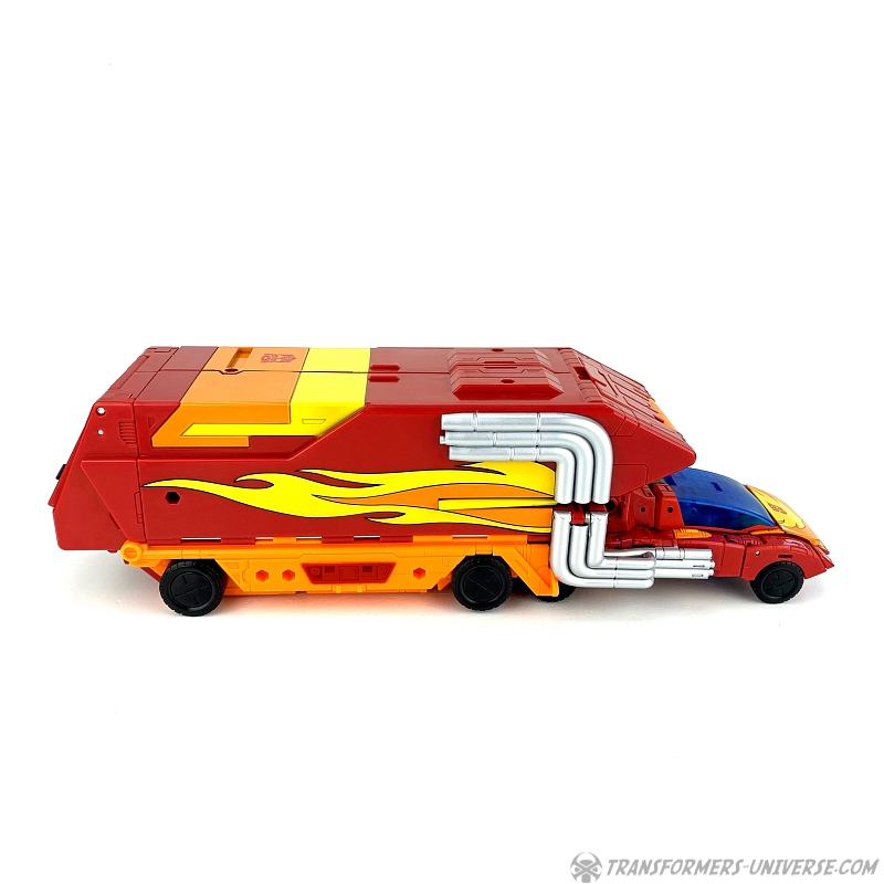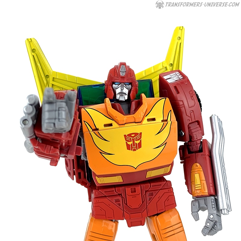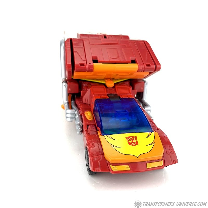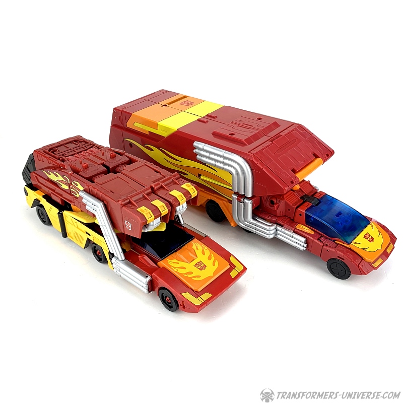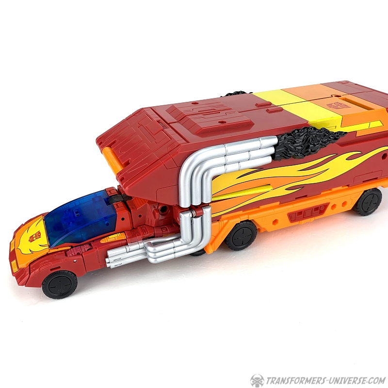 Bemerkungen: Ich bin sicher ihr kennt die Story: im 1986er Transformers Kinofilm wird Hot Rod zum neuen Autobot Anführer, nachdem Optimus Prime im Kampf gegen Megatron stirbt. Er besiegte Unicron, führte die Autobots durch die Staffel 3 des Cartoons, und wurde dann wieder zu Hot Rod degradiert, weil scheinbar alle 80er Kinder sich umbringen würden, wenn nicht Optimus wieder zum Anführer würde. Leider hat sich Rodimus Prime davon nie wirklich erholt, weswegen wir ihn meistens nur in seiner Hot Rod Inkarnation zu sehen kriegen.