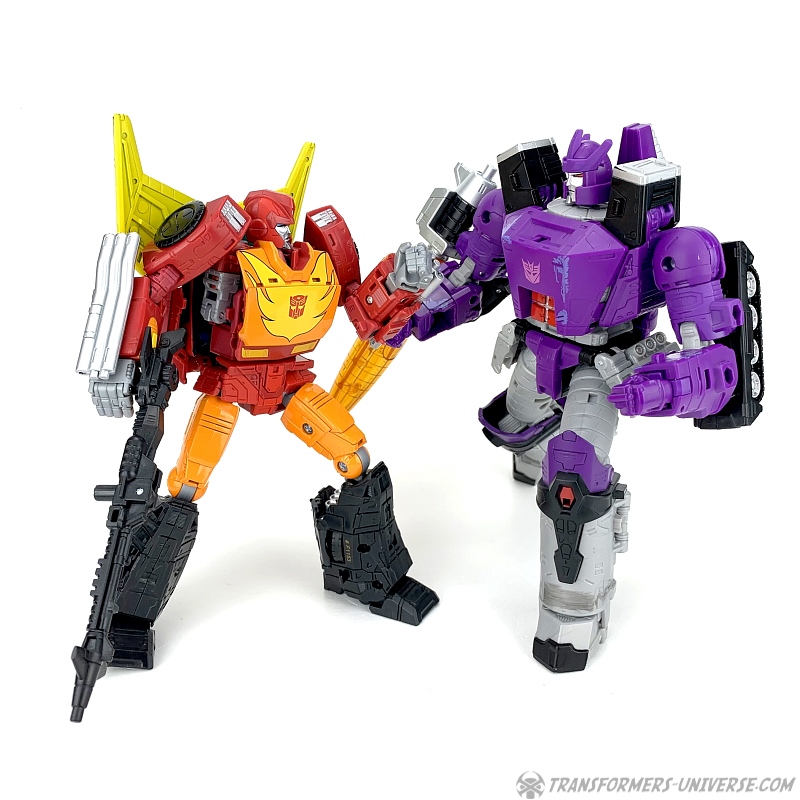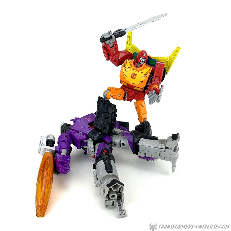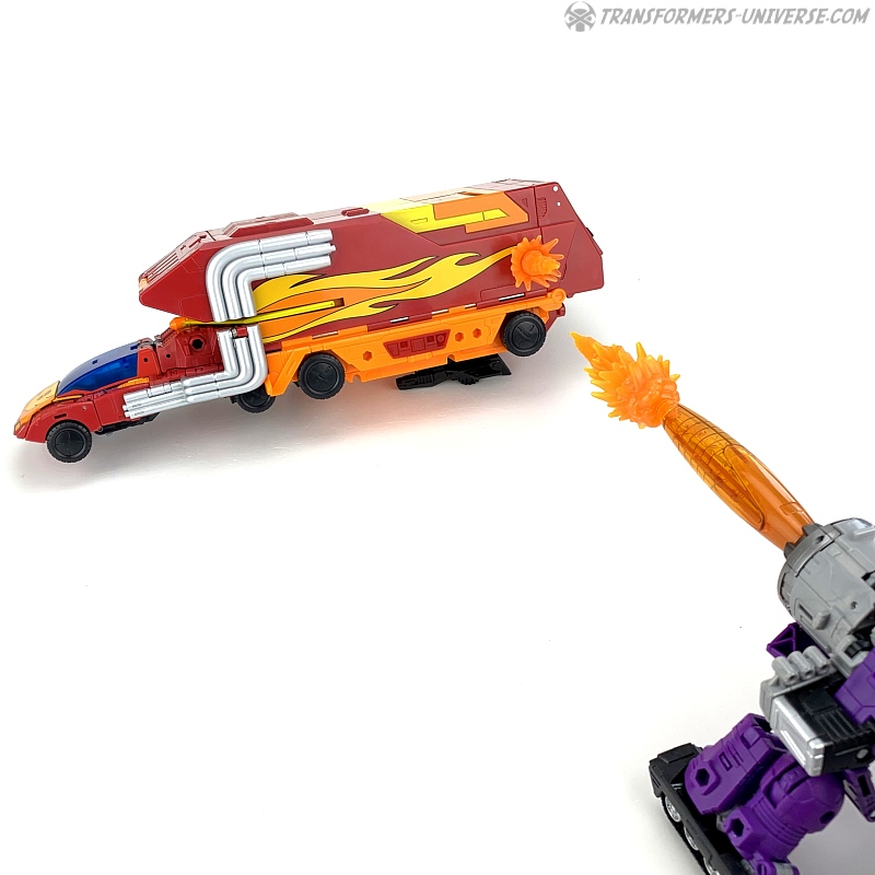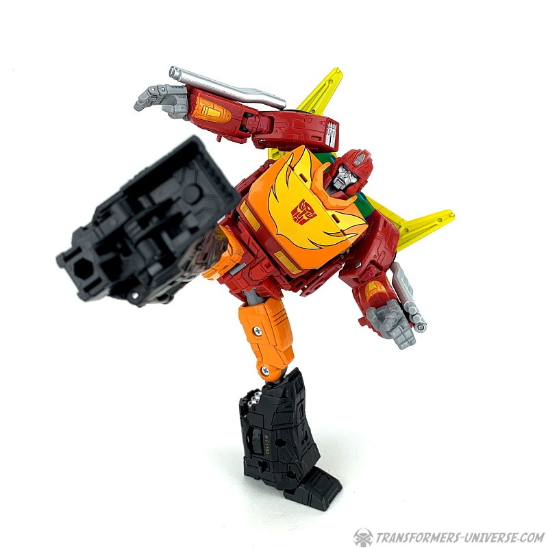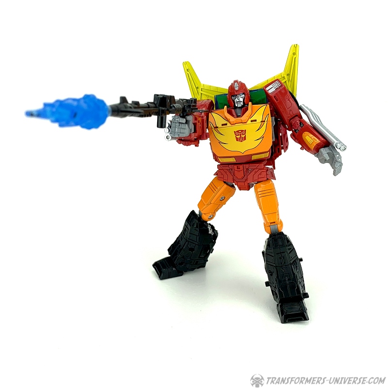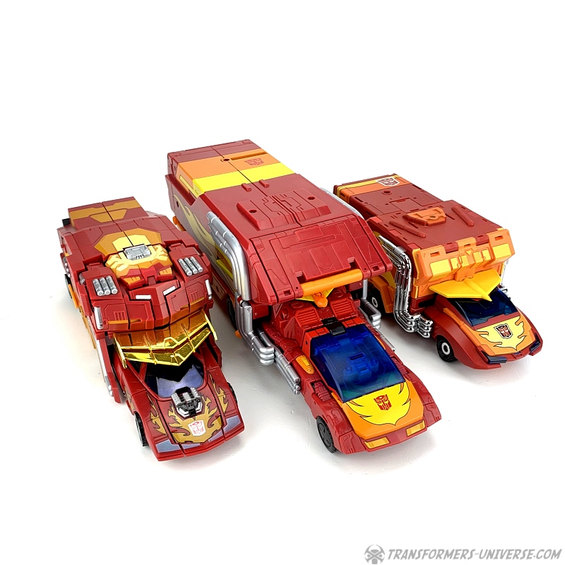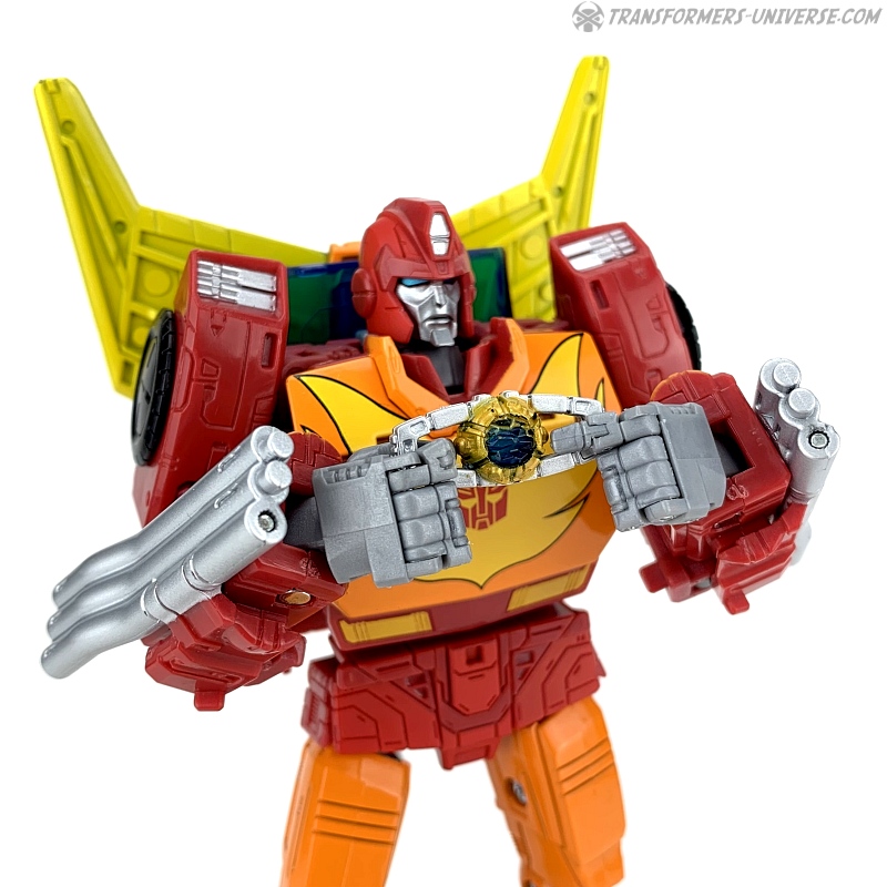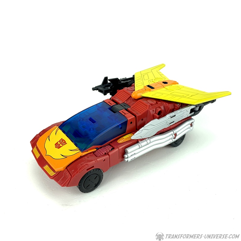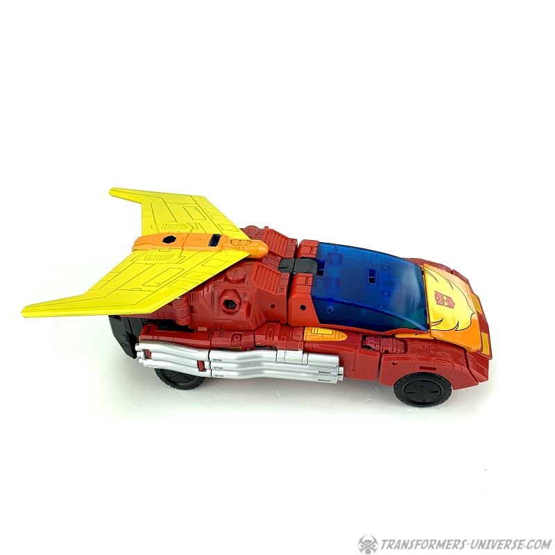 Bemerkungen: Ich bin sicher ihr kennt die Story: im 1986er Transformers Kinofilm wird Hot Rod zum neuen Autobot Anführer, nachdem Optimus Prime im Kampf gegen Megatron stirbt. Er besiegte Unicron, führte die Autobots durch die Staffel 3 des Cartoons, und wurde dann wieder zu Hot Rod degradiert, weil scheinbar alle 80er Kinder sich umbringen würden, wenn nicht Optimus wieder zum Anführer würde. Leider hat sich Rodimus Prime davon nie wirklich erholt, weswegen wir ihn meistens nur in seiner Hot Rod Inkarnation zu sehen kriegen.