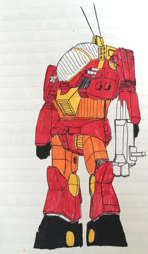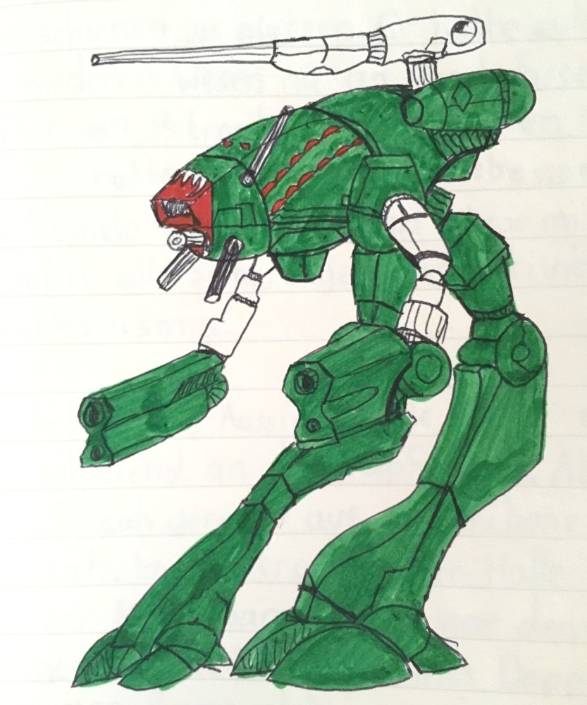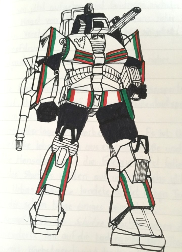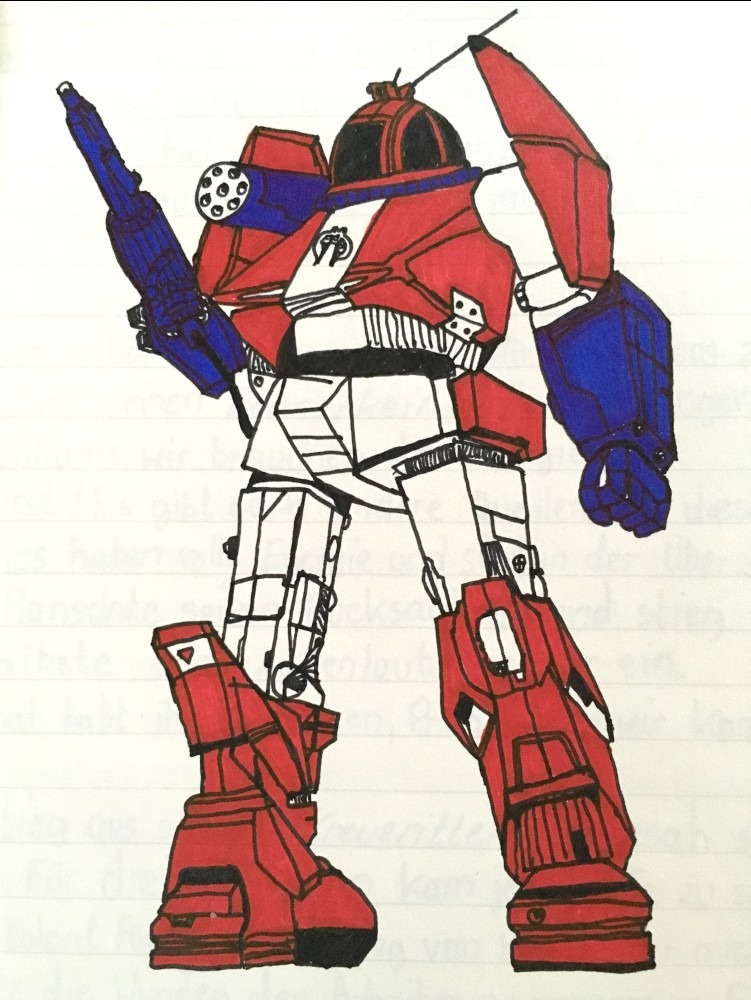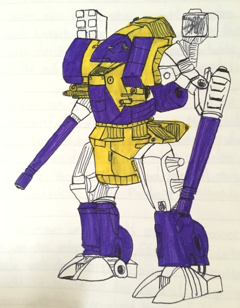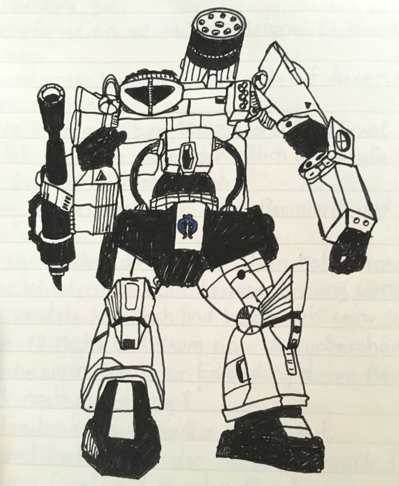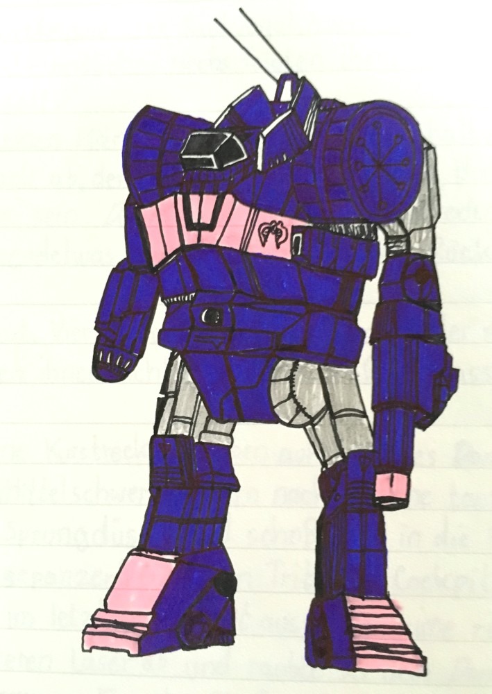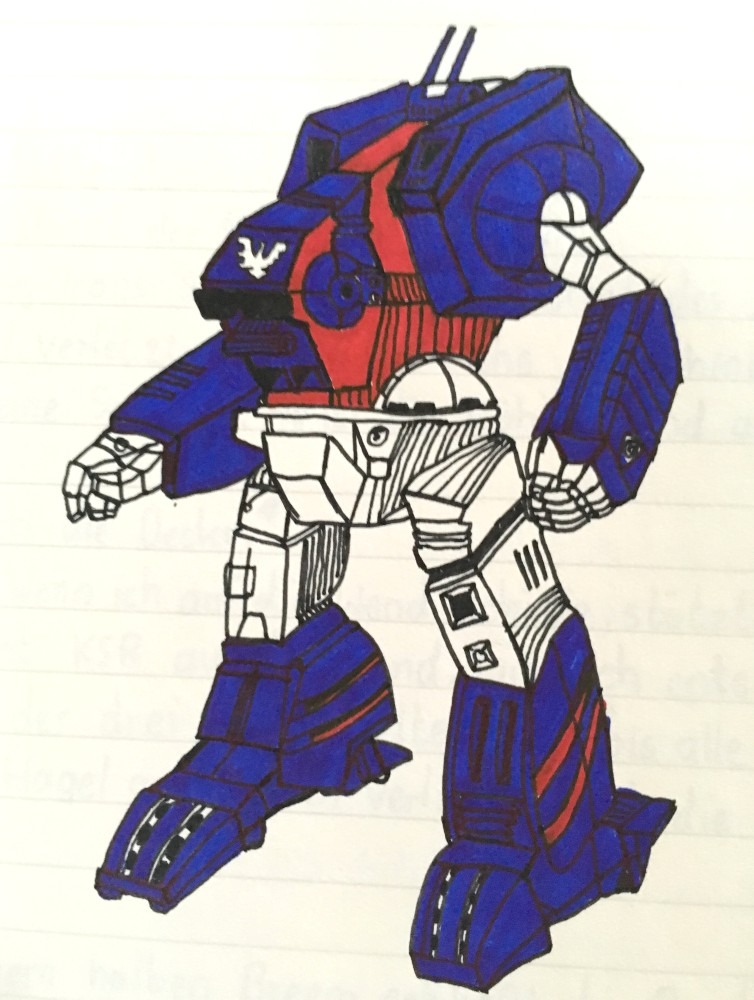 Many years ago a young boy called Phil was a fan of the Transformers and then stumbled upon the Battletech roleplaying game and novels. So what could have been more natural than to combine the two? I also wrote a pretty bad fanfiction for that crossover, basically a rip-off of the Transformers cartoon pilot and movie. Thankfully that one has not survived, but these drawings here have.