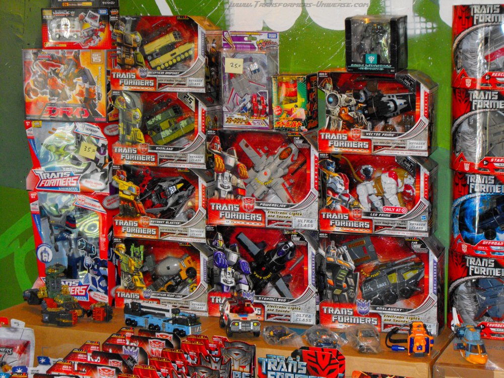 But back to happier topics: On Sunday morning, 8am sharp, we were well-rested (as much as the crappy hotel beds allowed) and arrived at the location. Greetings and welcomes were exchanged and then we went to work, because there were several big boxes containing figures for our "Transformers: 2010” exhibit, as well as contestants for our Custom Contest waiting to be unpacked.