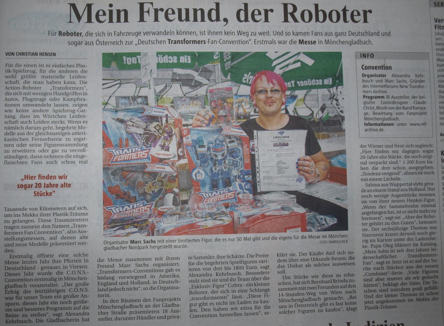 - The newspaper "Rheinische Post” did an interview about the convention and Transformers in general (see below for a link to the article)