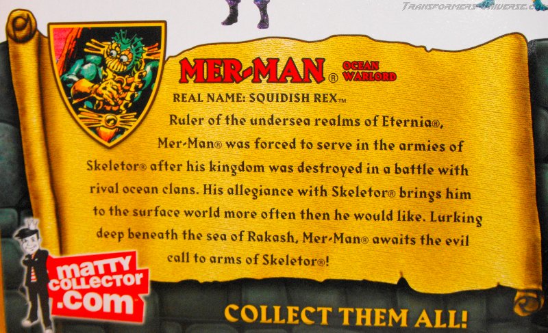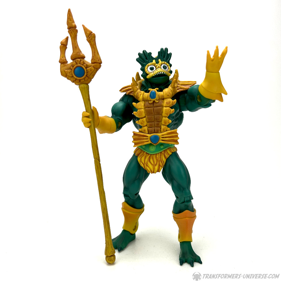 Ruler of the undersea realms of Eternia, Mer-Man was forced to serve in the armies of Skeletor after his kingdom was destroyed in a battle with rival ocean clans. His allegiance with Skeletor brings him to the surface world more often than he would like. Lurking deep beneath the Sea of Rakash, Mer-Man awaits the evil call to arms of Skeletor!