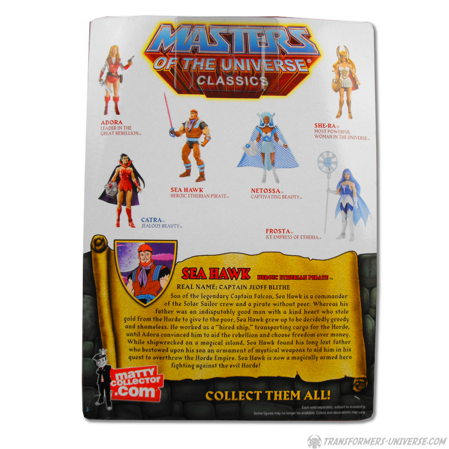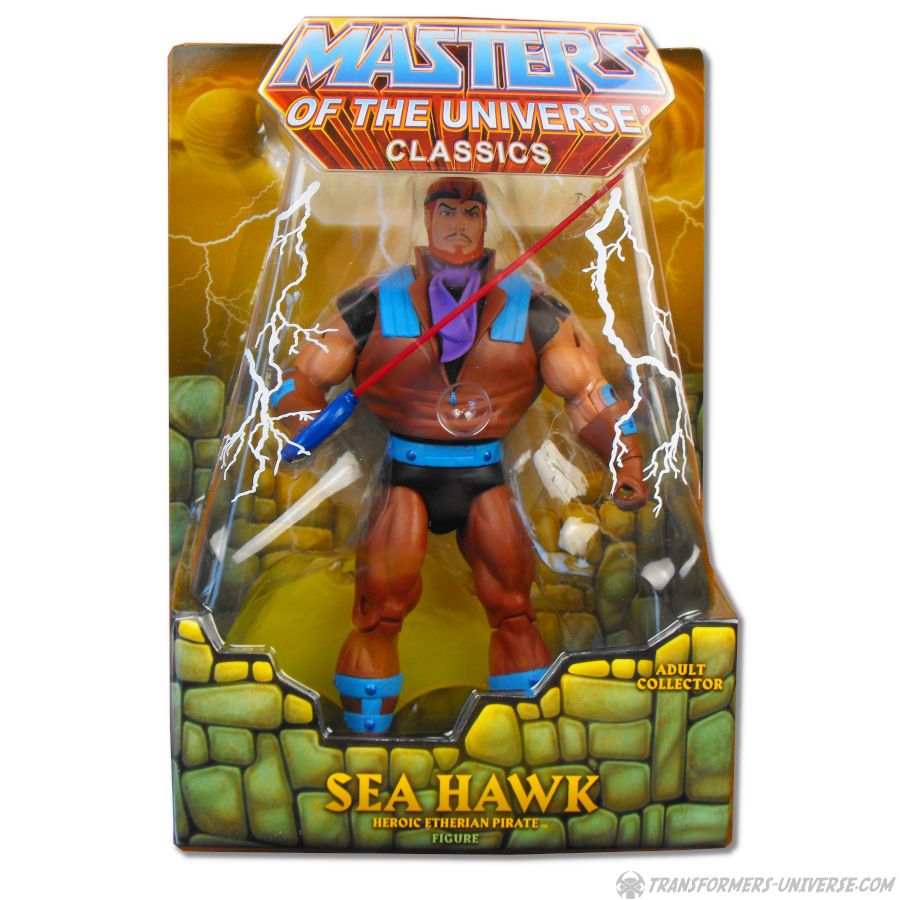 Son of the legendary Captain Falcon, Sea Hawk is a commander of the Solar Sailor crew and a pirate without peer. Whereas his father was in indisputably good man with a kind heart who stole gold from the Horde to give to the poor, Sea Hawk grew up to be decidedly greedy and shameless. He worked as a “hired ship”, transporting cargo for the Horde, until Adora convinced him to aid the rebellion and choose freedom over money. While shipwrecked on a magical island, Sea Hawk found his long lost father who bestowed upon his son an armament of mystical weapons to aid him in his quest to overthrow the Horde Empire. Sea Hawk is now a magically armed hero fighting against the Evil Horde!