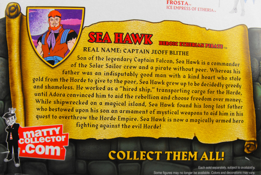 Prelude: In a fantasy franchise, the pirate with the heart of gold is a well-known archetype. For the Masters of the Universe franchise, more specifically the She-Ra portion of it, that archetype is Sea Hawk, the Etherian pirate that serves as Princess Adora’s side piece. So fly the Jolly Roger and let’s say “Aaarrr”!