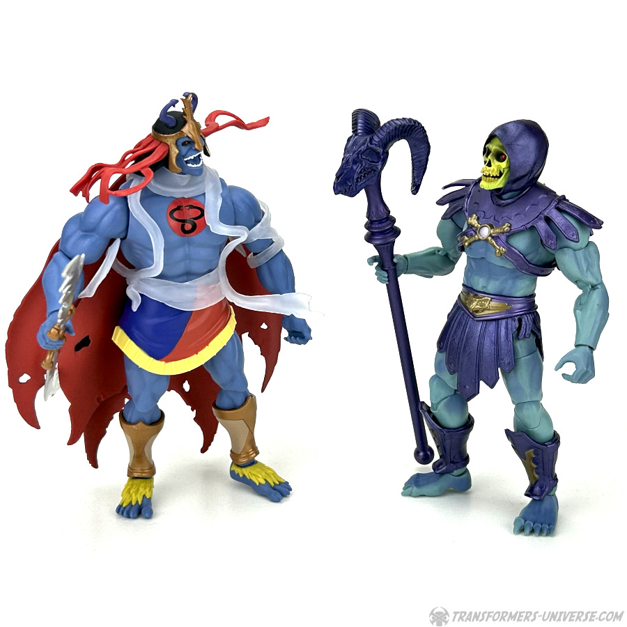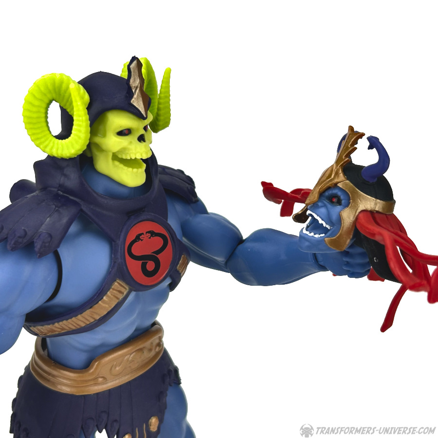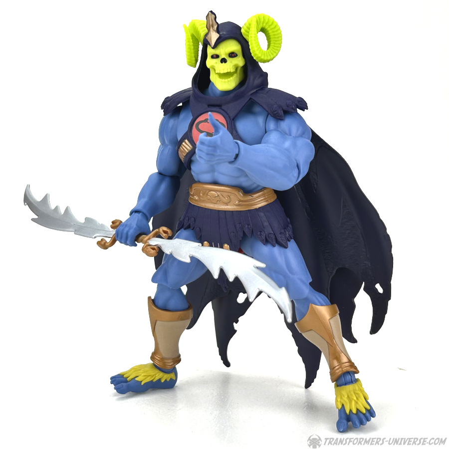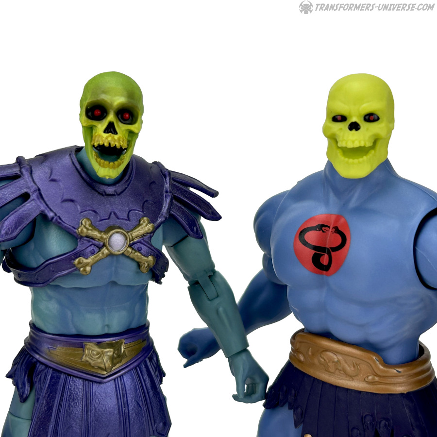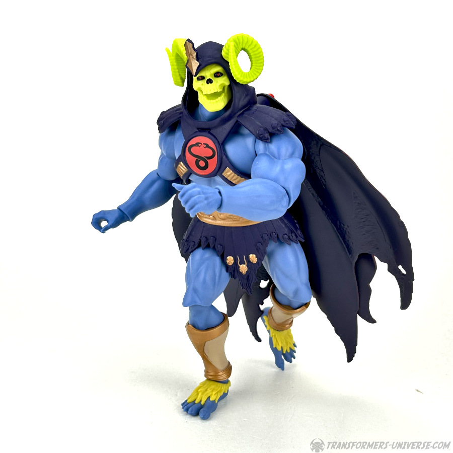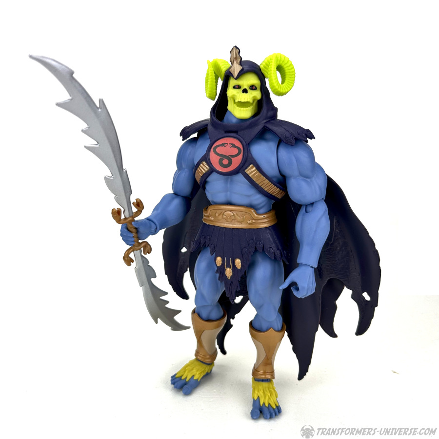 Funny thing: despite the MotU X Thundercats line being the same scale as the vintage MotU and Origins line, Skell-Ra himself is Masterverse-scaled. This is, of course, due to the fact that, when hyped up on the powers of the Ancient Spirits of Evil, Mumm-Ra is a pretty big guy and towering over all the other characters. It makes for a Skeletor (or Skell-Ra) who is perfectly fine standing among Masterverse figures, though.