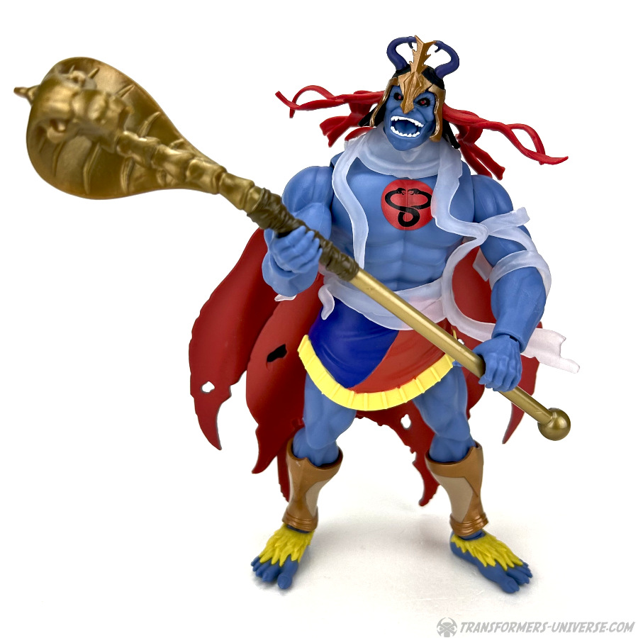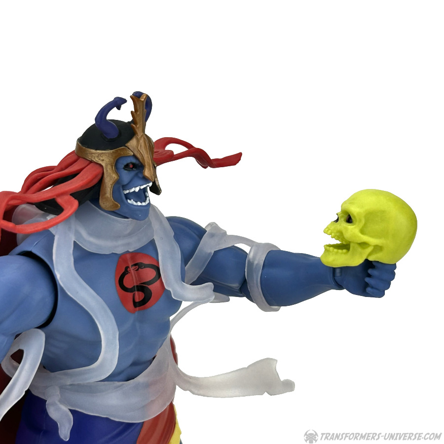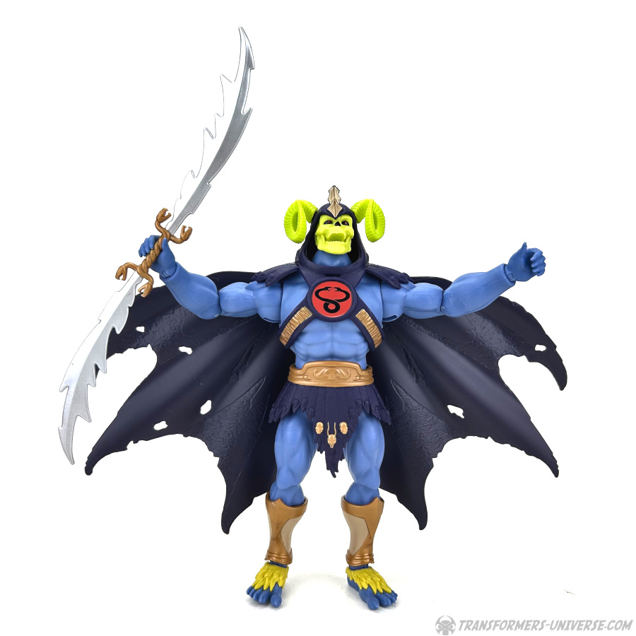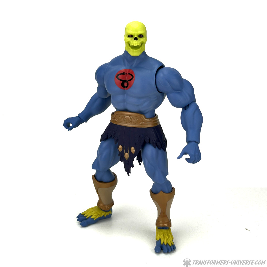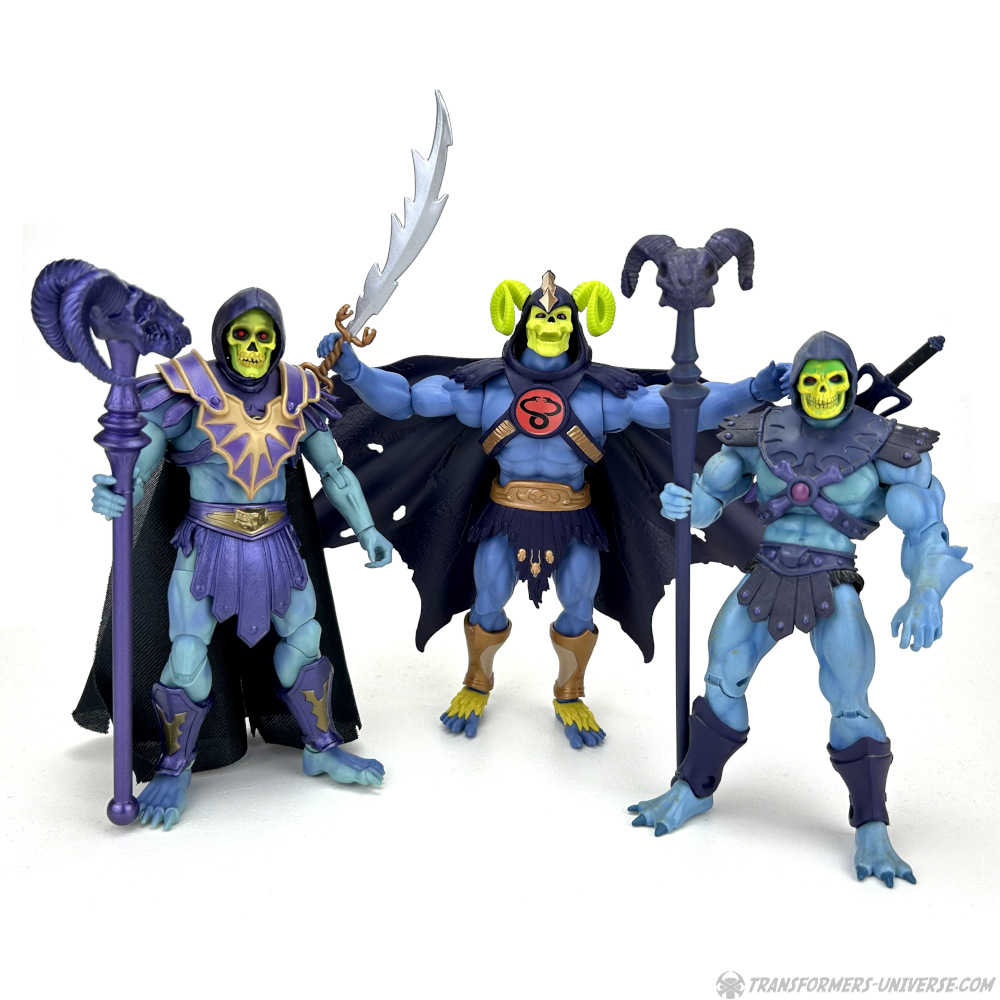 Funny thing: despite the MotU X Thundercats line being the same scale as the vintage MotU and Origins line, Skell-Ra himself is Masterverse-scaled. This is, of course, due to the fact that, when hyped up on the powers of the Ancient Spirits of Evil, Mumm-Ra is a pretty big guy and towering over all the other characters. It makes for a Skeletor (or Skell-Ra) who is perfectly fine standing among Masterverse figures, though.