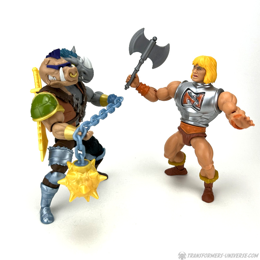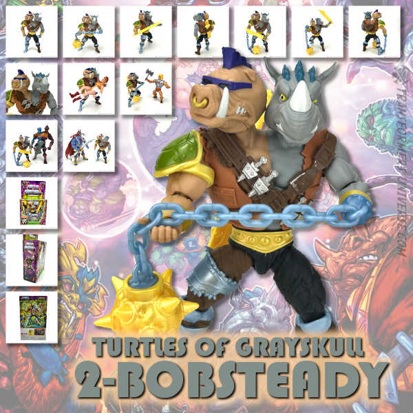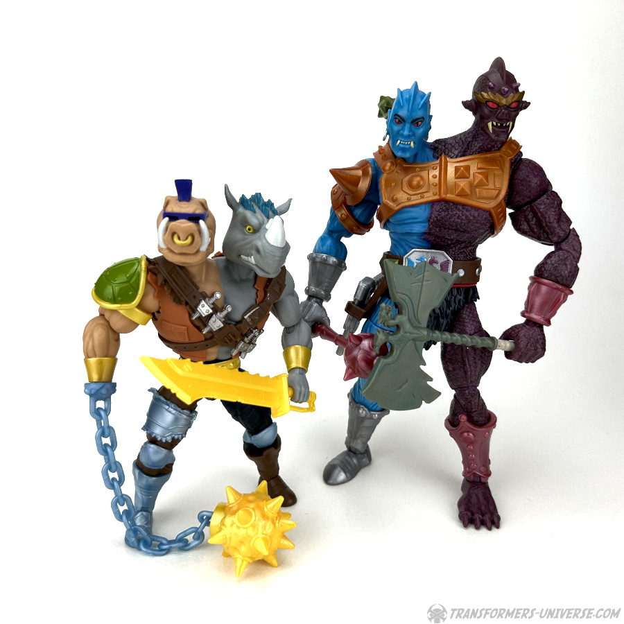 Prelude: Every cartoon villain worth his salt needs some bumbling, inept henchmen. In the case of the Teenage Mutant Ninja Turtle’s Shredder it was Bebop and Rocksteady, in case of Masters of the Universe Skeletor it was (among many others) Two-Bad. Combine these two… eh, four, and you get 2-Bobsteady from the Turtles of Grayskull line. Let’s say go!