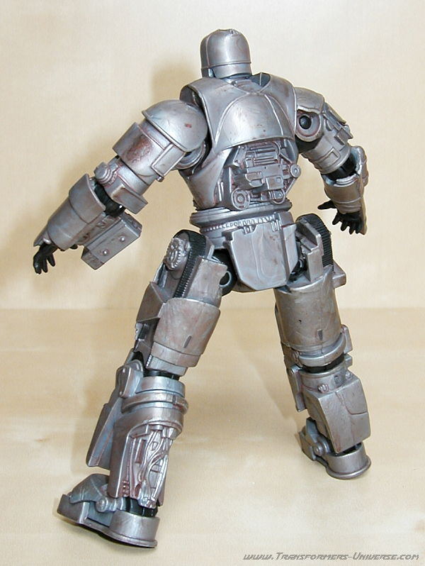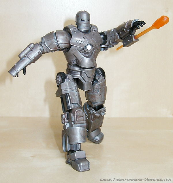 Robot Mode: I know, this isn't technically a robot mode, seeing as it's not a robot at all, but rather a man wearing armour, but I was too lazy to change the heading. Anyway, the Mark 01 Ironman armour looks exactly like what it's supposed to be: an improvised contraption cobbled together from whatever parts were lying around at the time, dirty, half-rusted, and in some strange, retro way just too cool for words. It looks fantastic. The amount of detailing they went into here is astonishing. There are nuts and bolts visible, the conveyer belts at the hips, lots of tubes and stuff on the back, and so on and so forth. You can tell a lot of attention went into the sculpting of this figure.