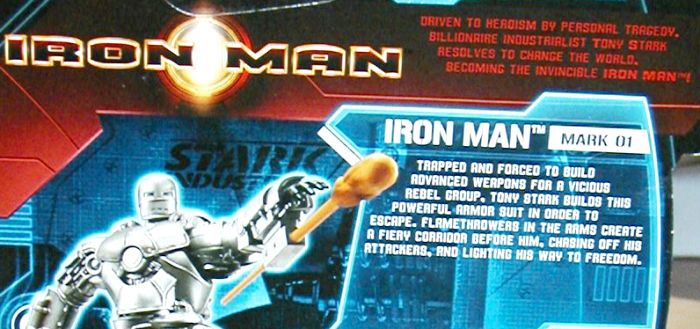 As for weapons this early version of Ironman doesn't sport his characteristic palm-mounted repulsor rays, but instead uses flame throwers mounted on each forearm. The one on the right arm is significantly larger and features a 'flame blast' missile. The missile doesn't really lock in and looks more like a honey spoon than a flame blast, but whatever. It doesn't take anything away from this excellent figure.